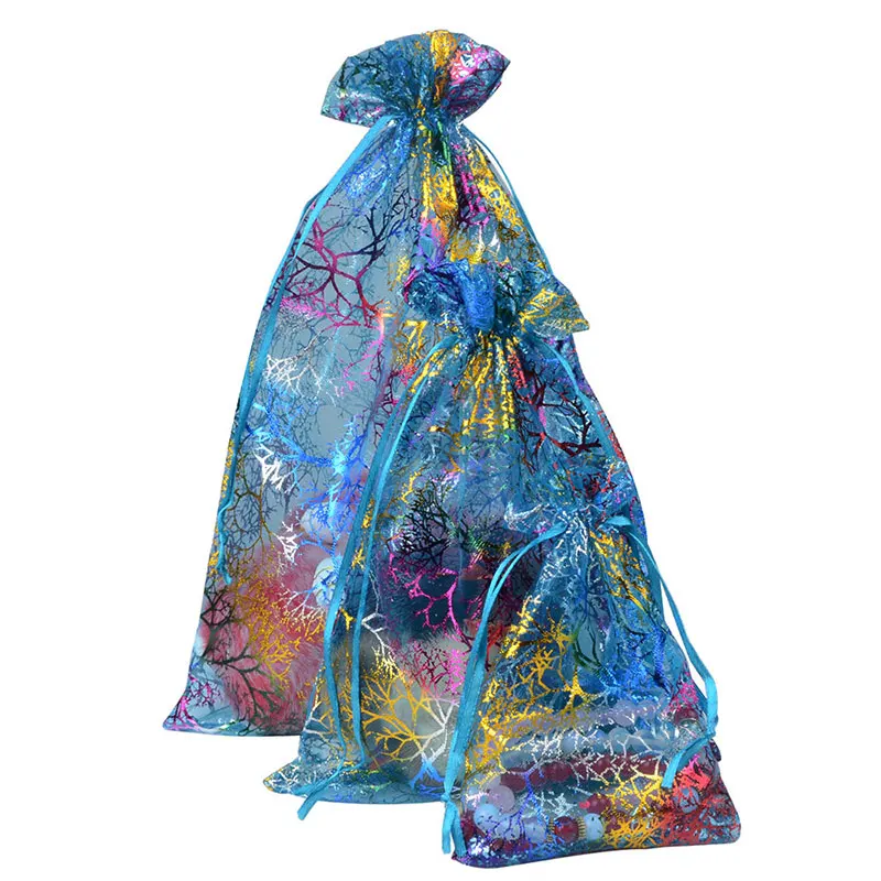 Name:50pcs/Lot Drawable Colorful Tree Snowflake Organza Packaging Bags 7x9cm 9x12cm 10x15cm 13x18cm Wedding Christmas Gift Pouches
