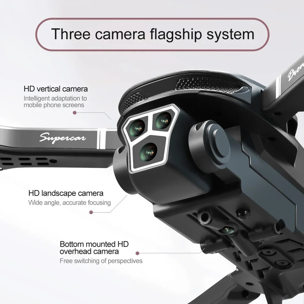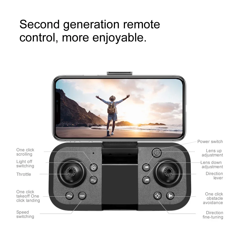 1. The front lens is placed with wide-angle 8K high-definition WIFI, and the optical flow high-definition lens at the bottom can switch the camera angle. The servo gimbal design increases stability, and EIS electronic image stabilization is added to make the picture lines clearer