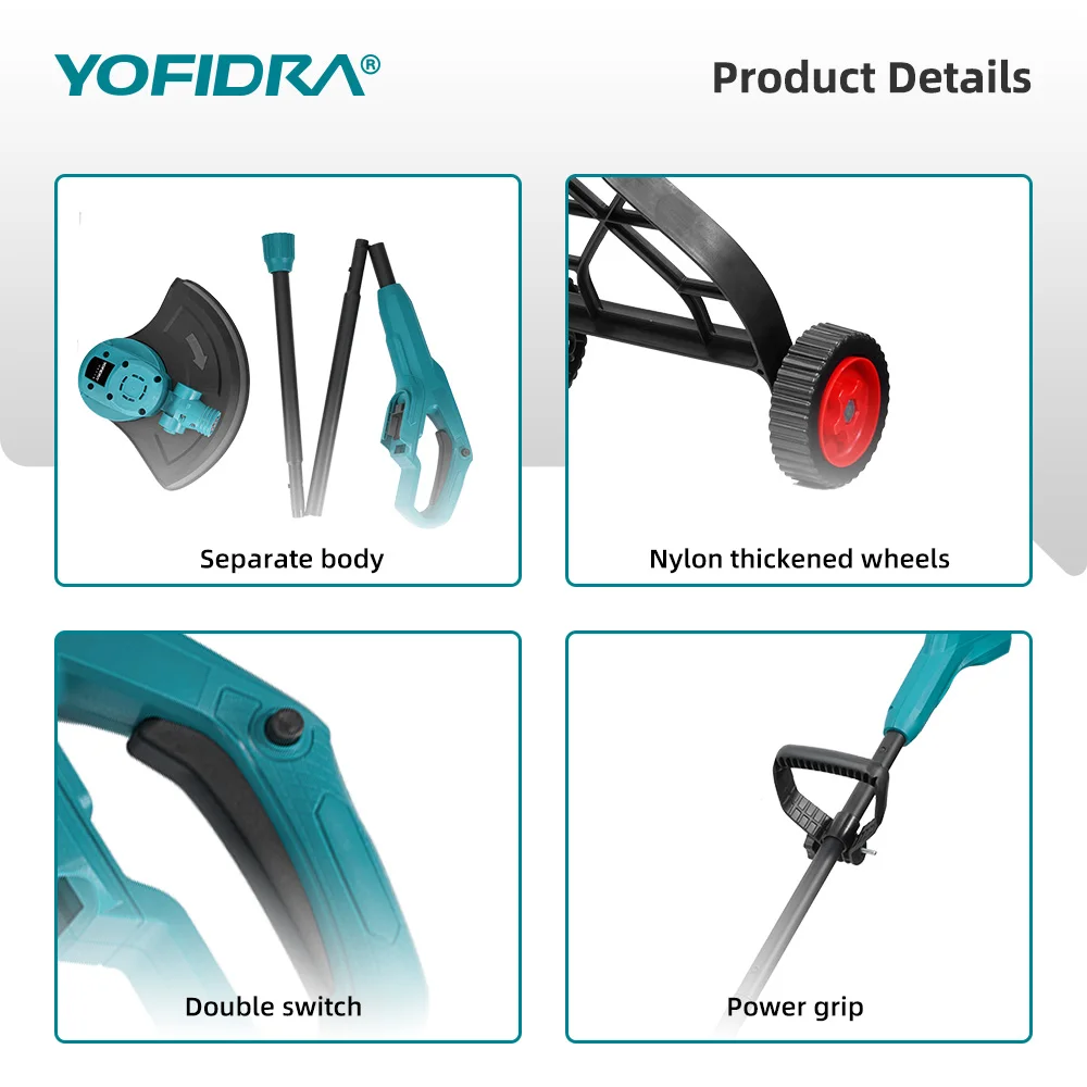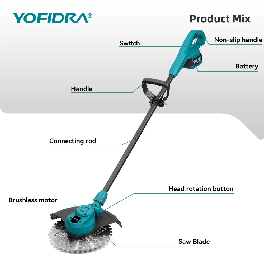YOFIDRA 10Inch 6000W Brushless Foldable Electric Lawn Mower Cordless Trimmer Garden Weeding Grass Power Tools For 18V Battery