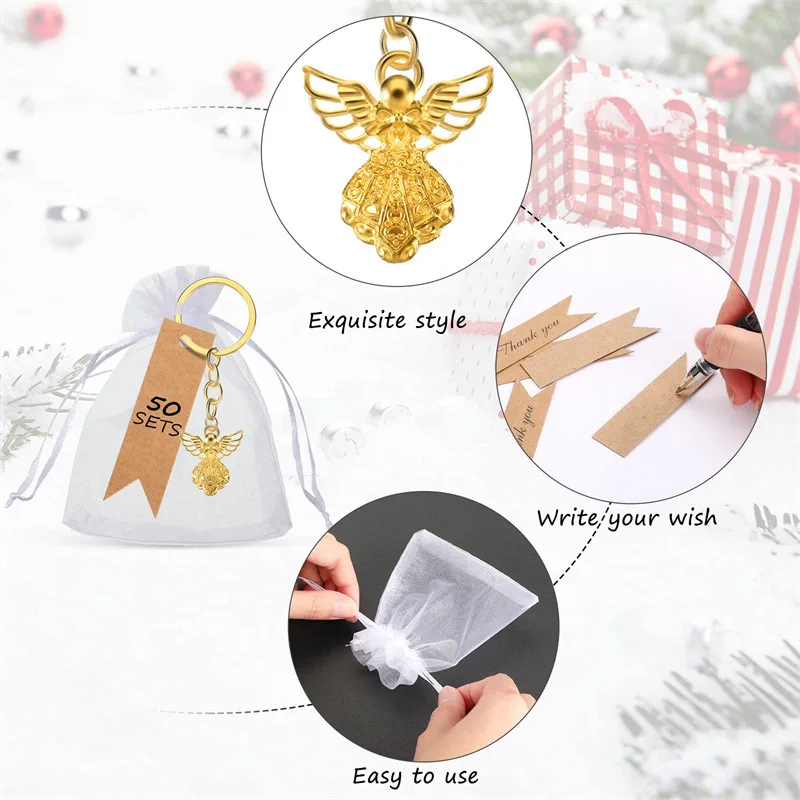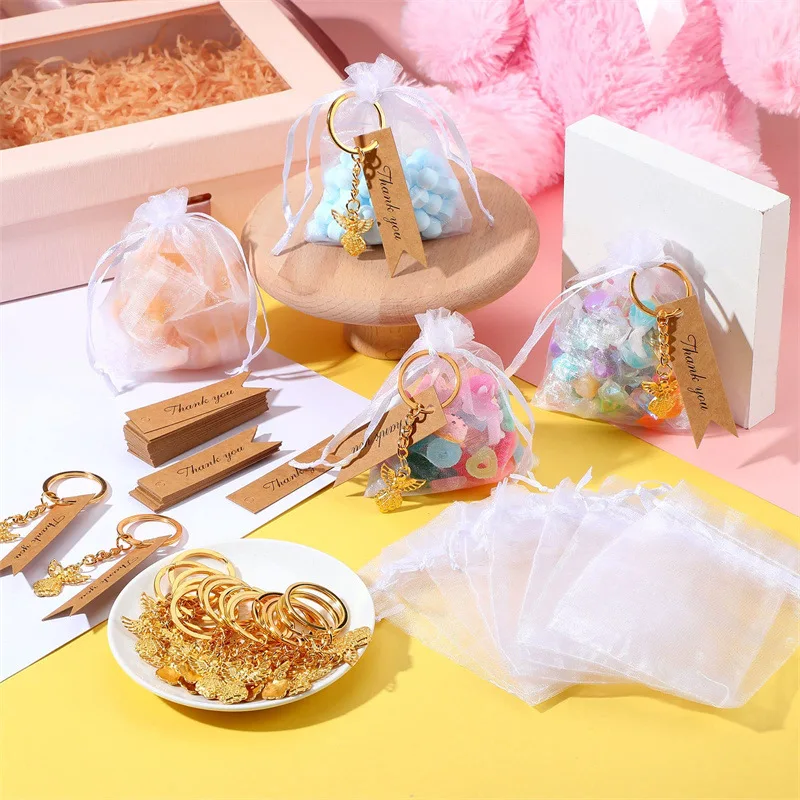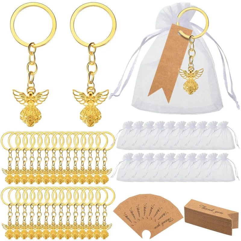 20/50pcs Baby Shower Favors Gifts Cute Angel Keychains with Thank You Card