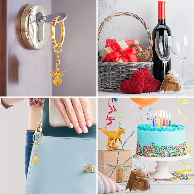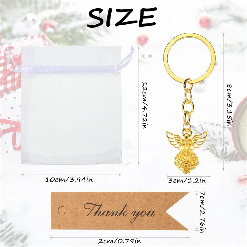 1,Proper Size: Baby shower party favors Angel Keychains approx 3.1"x 1.2", thank you card 2.76"x 0.79", favor bags 4.72"x 3.94".