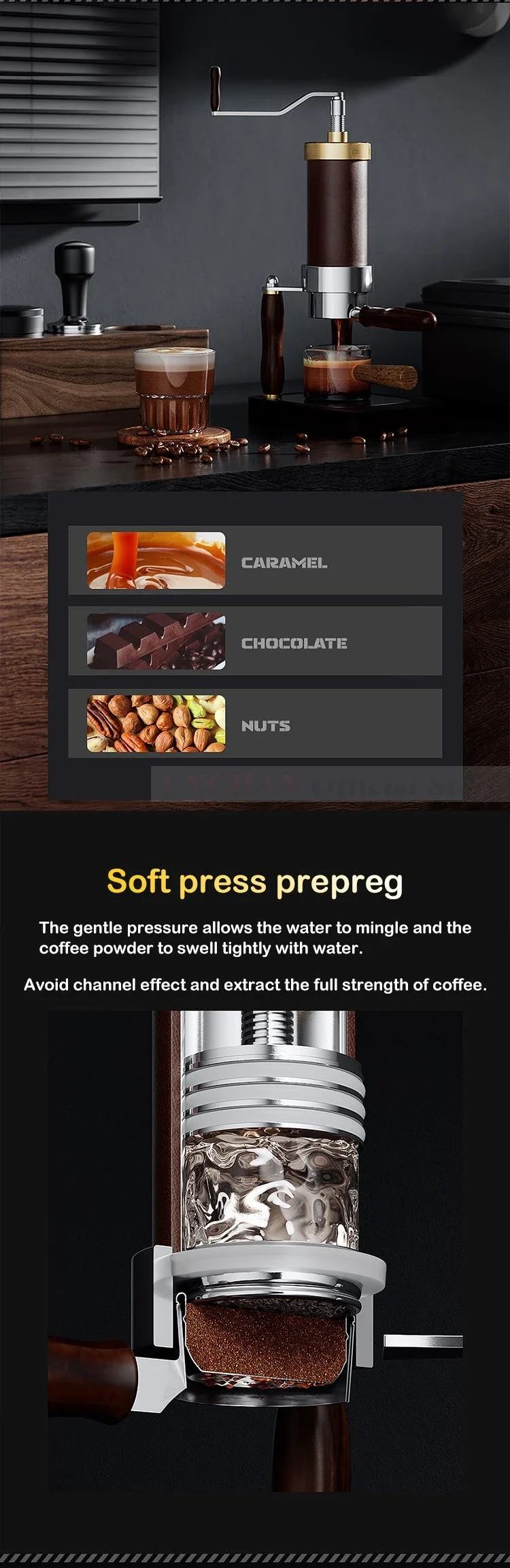 1. Hand-powered / Pneumatic, Switch anytime, Variable pressure extraction Coffee.