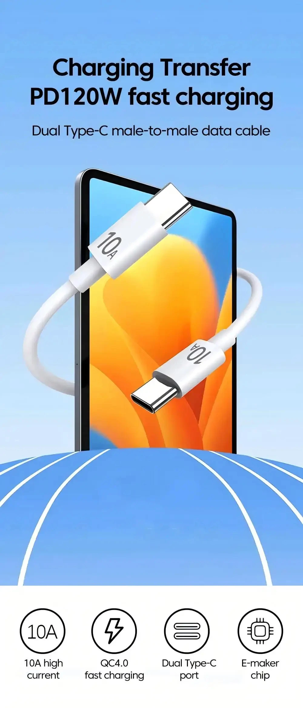 Lightning fast charging: This wire is designed with advanced technology, providing a lightning fast charging speed of up to 10A, ensuring that your device starts up immediately.