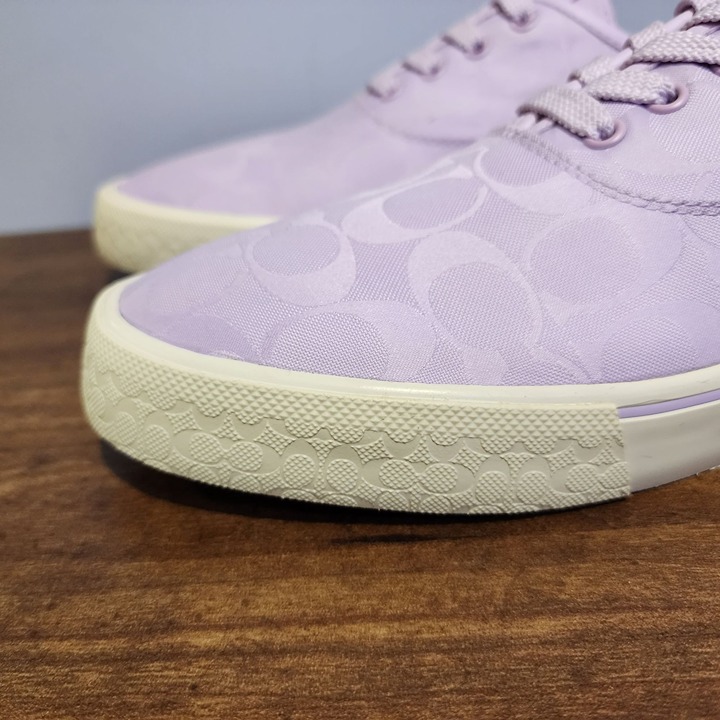 Built for the urban obstacle course, this lightweight Skate is made with proprietary Coach CitySole technology for maximum comfort and flexibility. An updated take on a classic sneaker style, this minimalist Skate sits at the intersection of fashion and function. Inspired by a commitment to rethinking and reducing impact on the planet, it’s crafted of recycled Signature jacquard made up of 100% recycled poly yarns and smooth leather. The cushioned insole adds support and stability. Your feet will thank you.