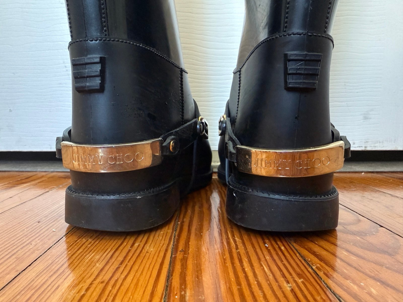 Jimmy Choo Rainboots (Size 36) Black/Gold with Buckle EUC