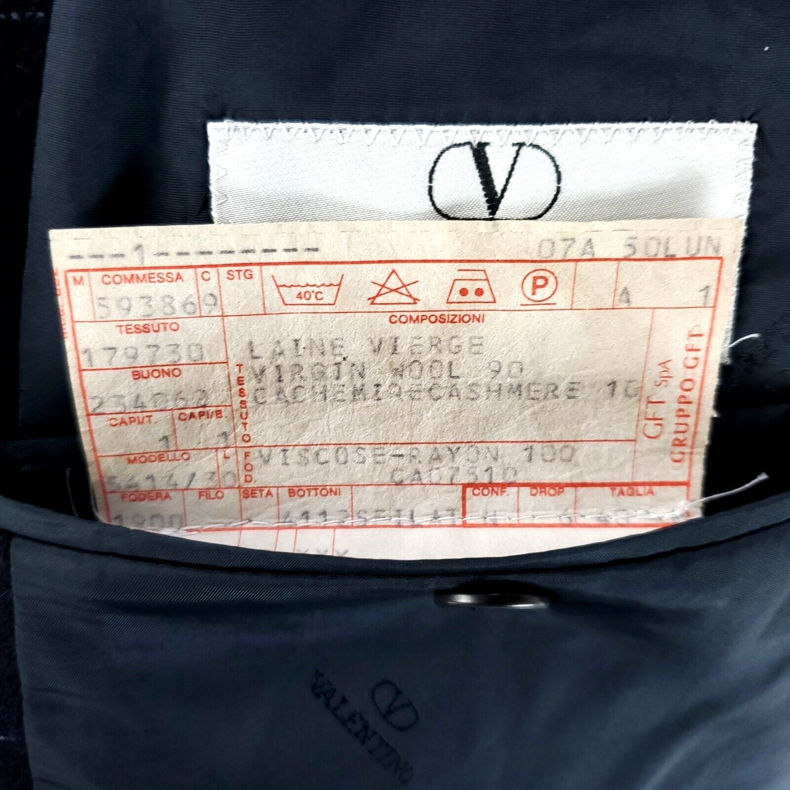 Valentino Flannel Wool Cashmere 3 Button Sport Coat W/ Vest 42L Blue Windowpane
