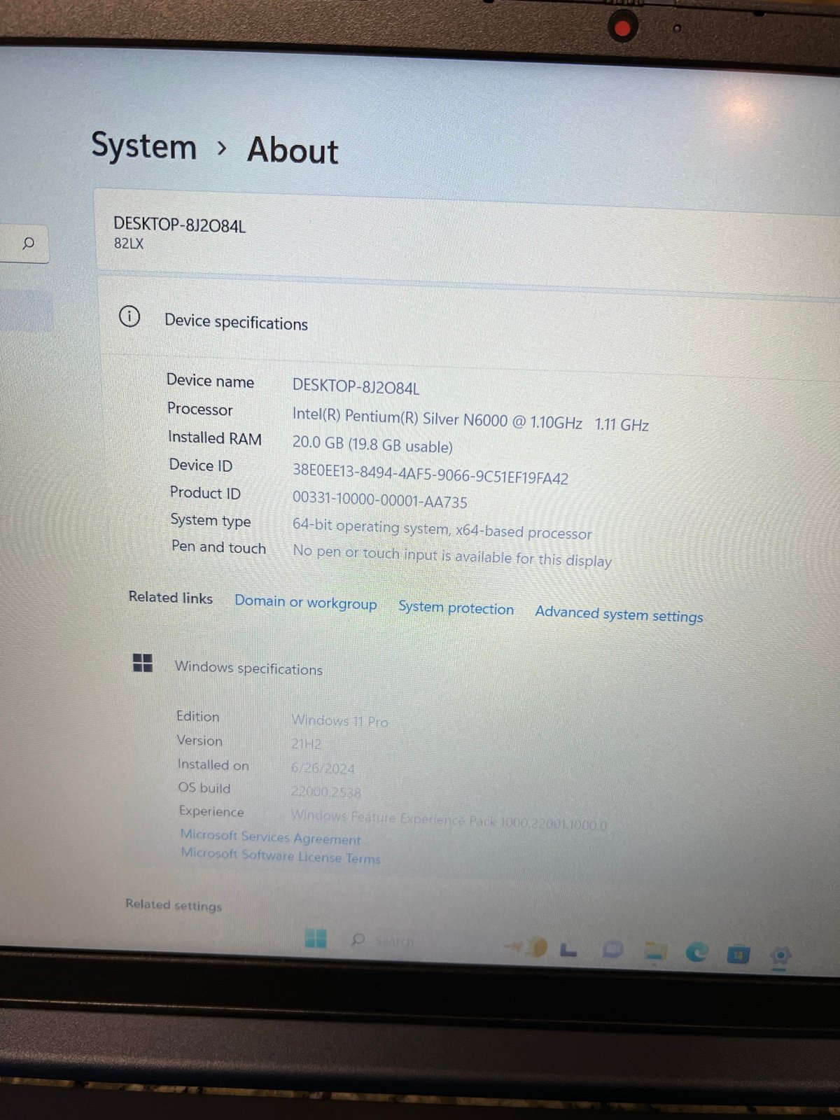 PROCESSOR: Intel(R) Pentium(R) Silver N6000 @ 1.10GHz 1.11 GHz