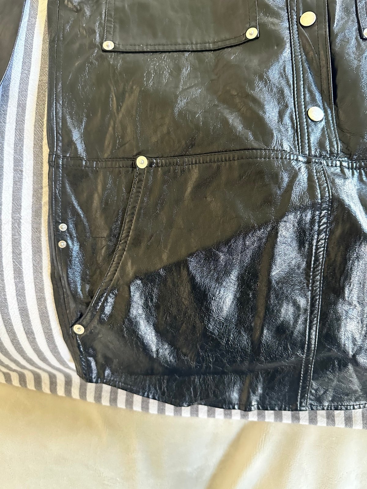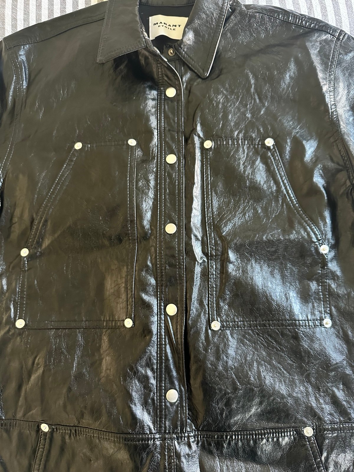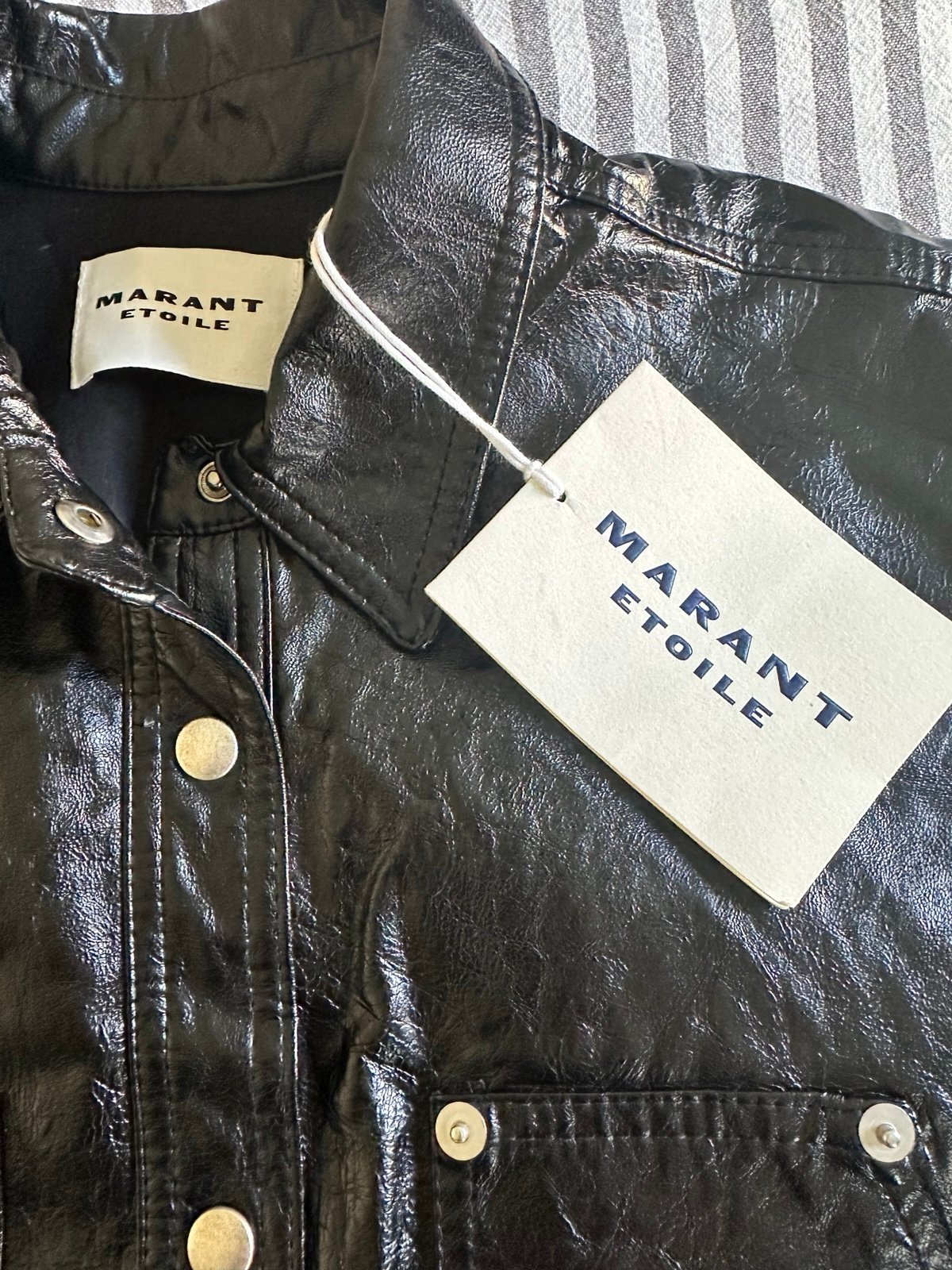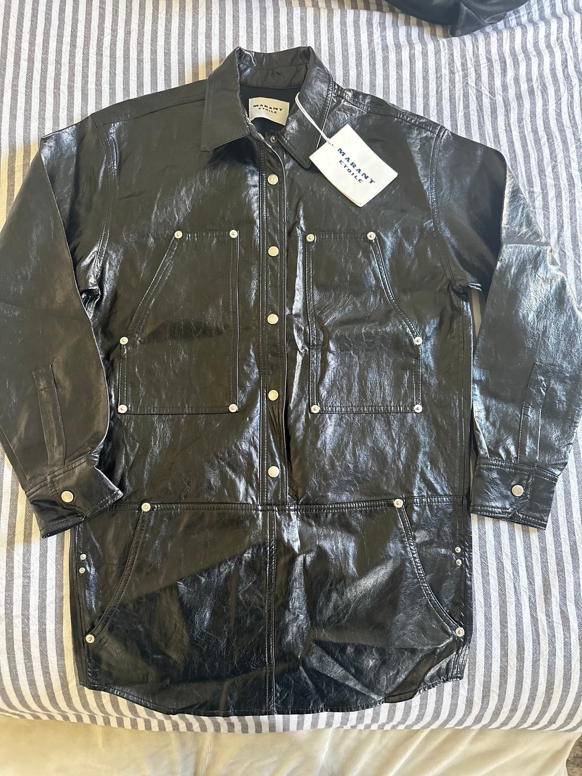 NWT Isabel Marant Etoile Ayali mini shirt dress in a black crinkled partner vegan leather, size 38. Retail is $695. Perfect for Fall! See pictures for measurements.