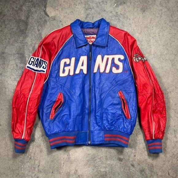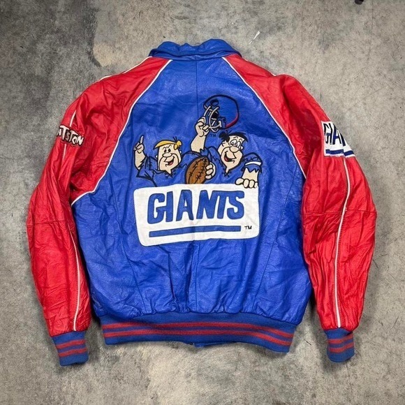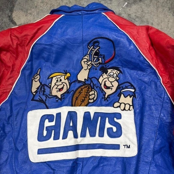 Vintage 90s Flintstones New York Giants NFL Football Cartoon Montana Toons Leather Jacket