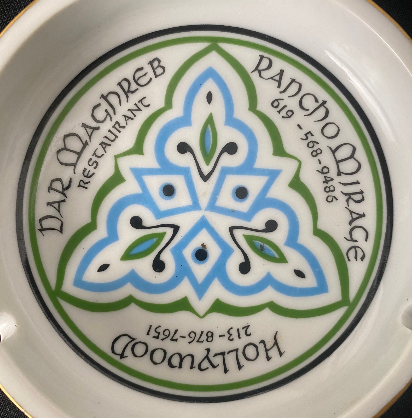 This is a vintage ashtray from the now-closed Dar Maghreb Restaurant, which had locations in Hollywood and Rancho Mirage, California.