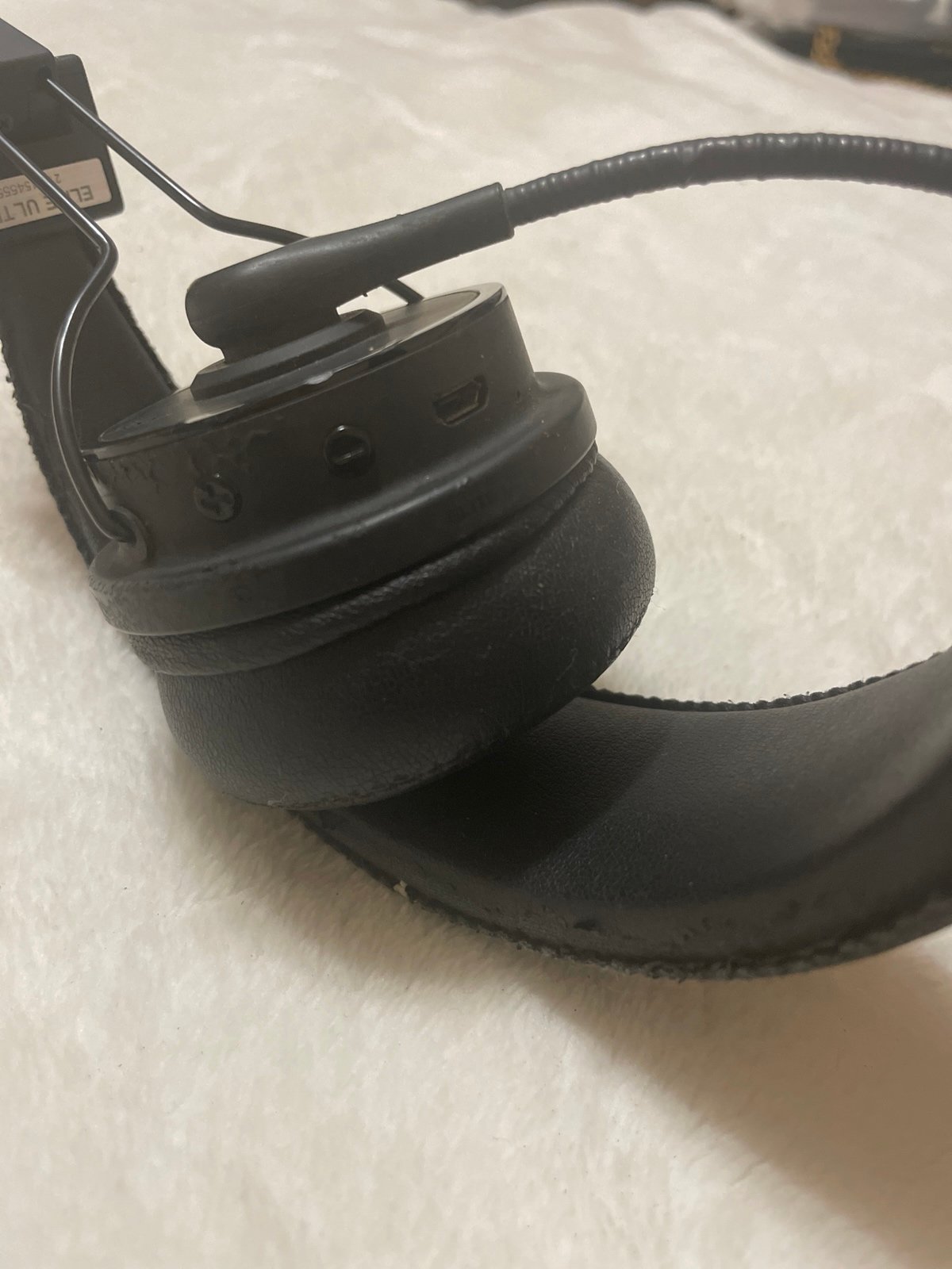Trucker headset Bluetooth capable. Can be charger with usb and come with an attached microphone. The set is great but as shown some of the fabric at the top wearing away on one side but other than that perfect. Comes in handy when driving long truck rides and taking orders for stops