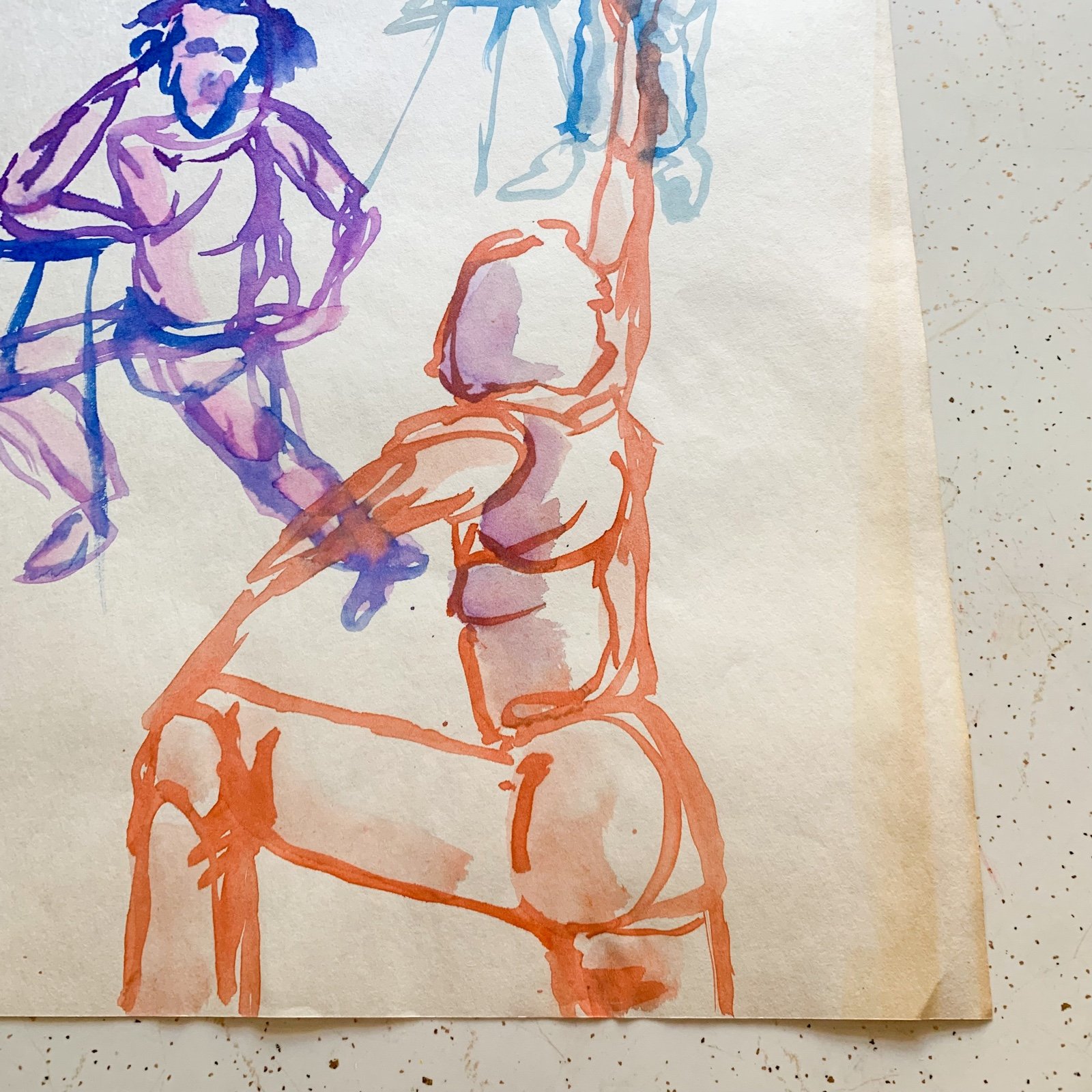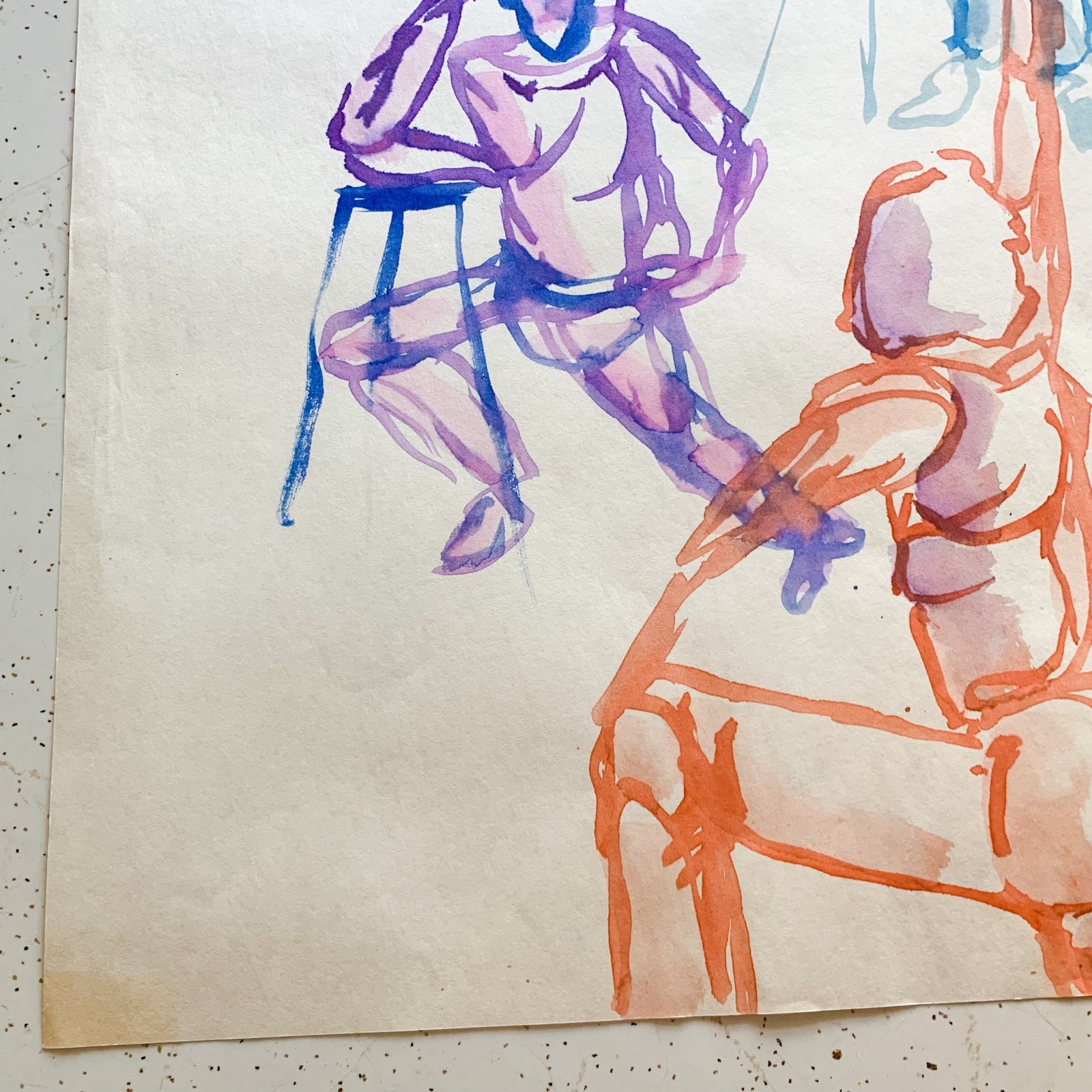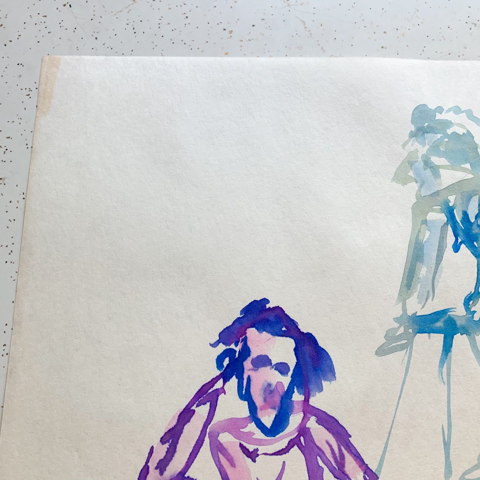 Great vintage original watercolor painting on paper. From a portfolio of artist Rosemarie Hahn. Figural study. Amazing colors. Funky outsider art feel. Have several other pieces from her. Great addition to your vintage home decor and art collection.