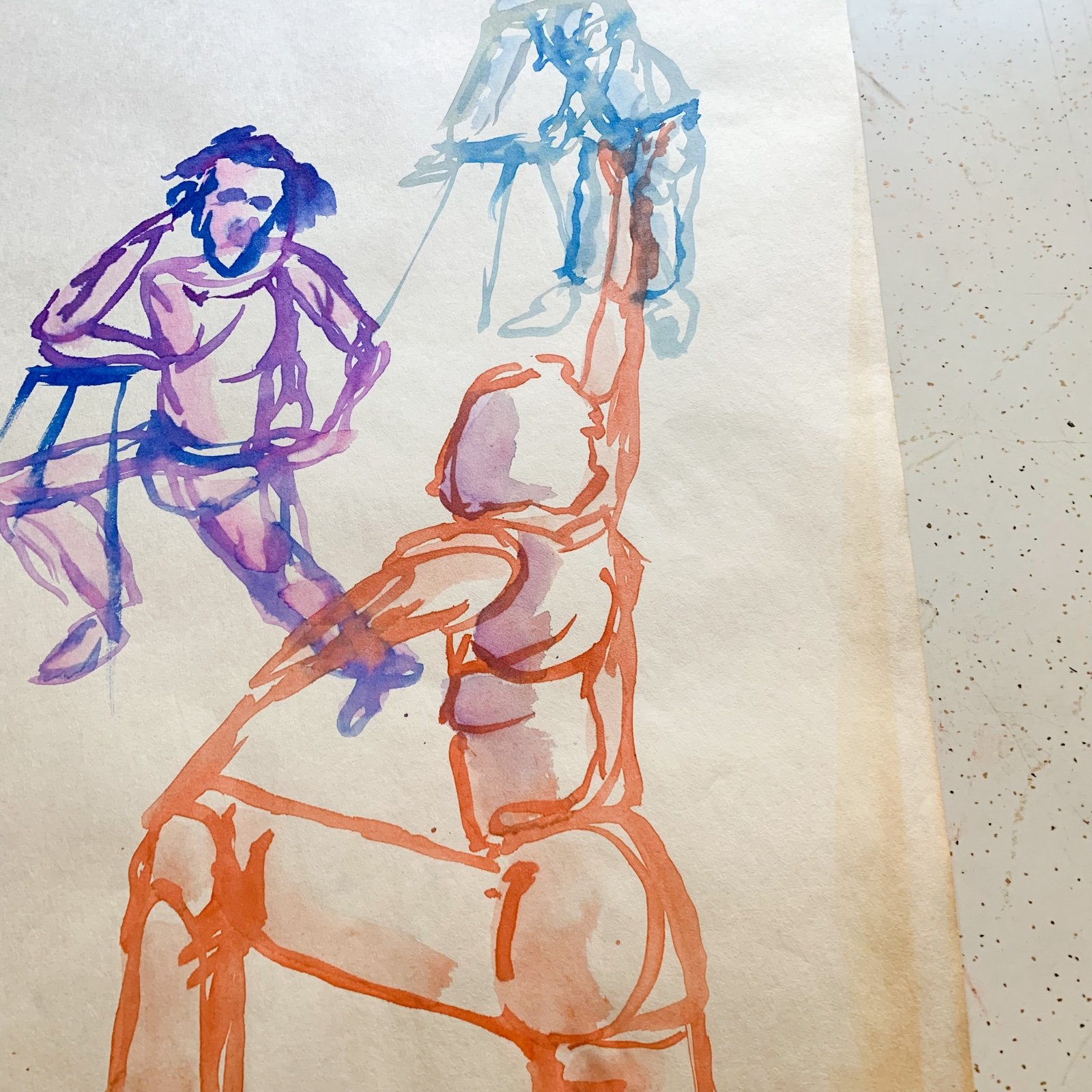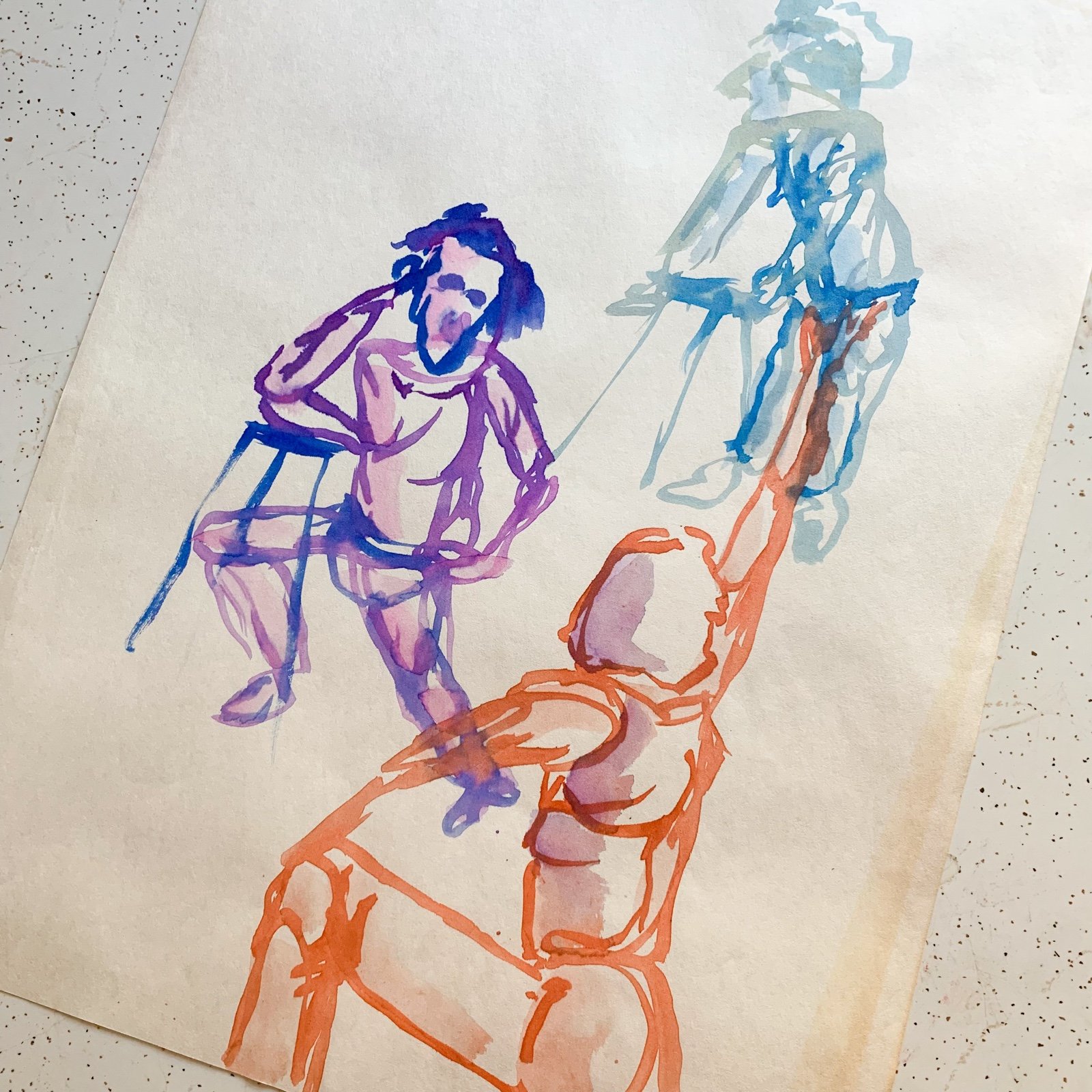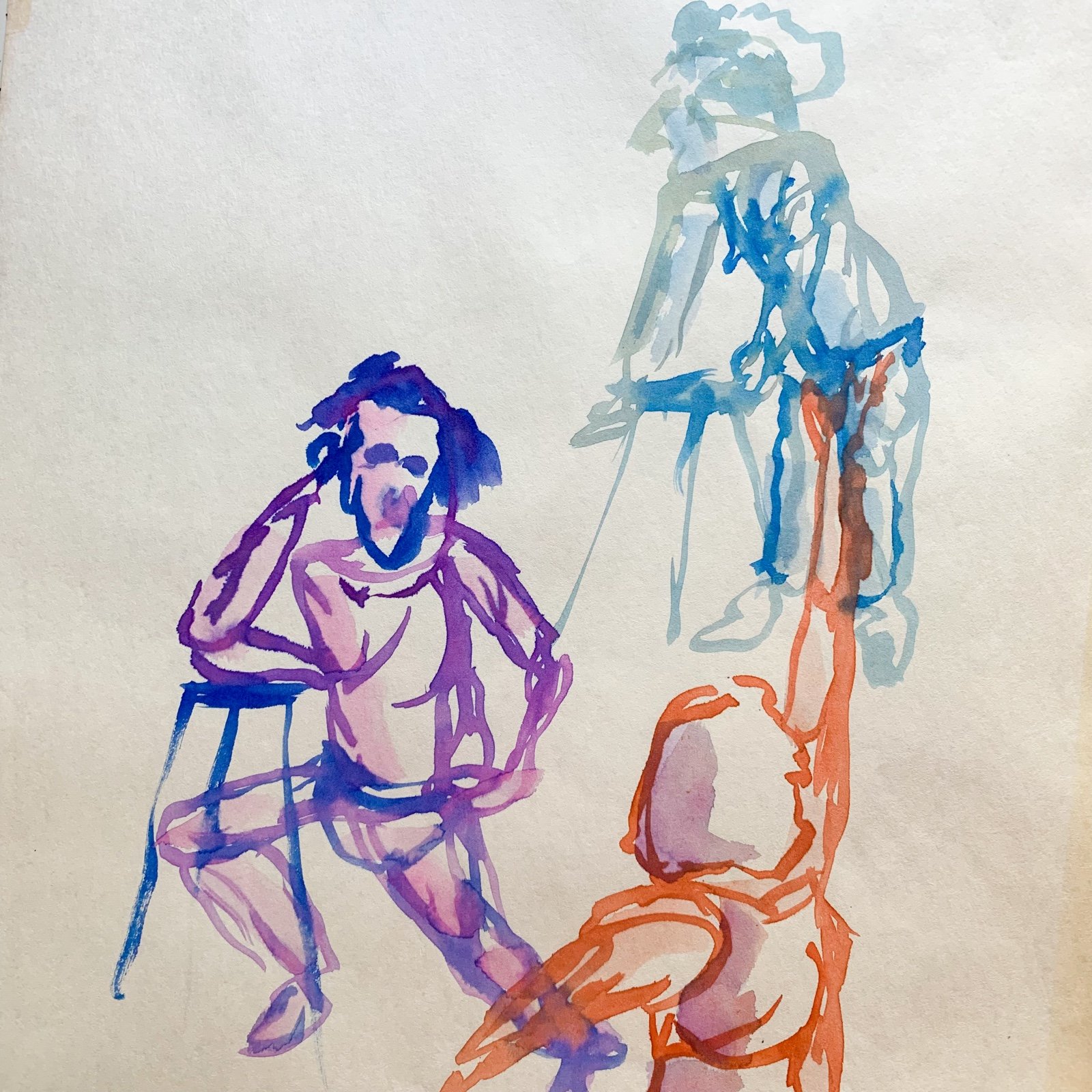 Great vintage original watercolor painting on paper. From a portfolio of artist Rosemarie Hahn. Figural study. Amazing colors. Funky outsider art feel. Have several other pieces from her. Great addition to your vintage home decor and art collection.