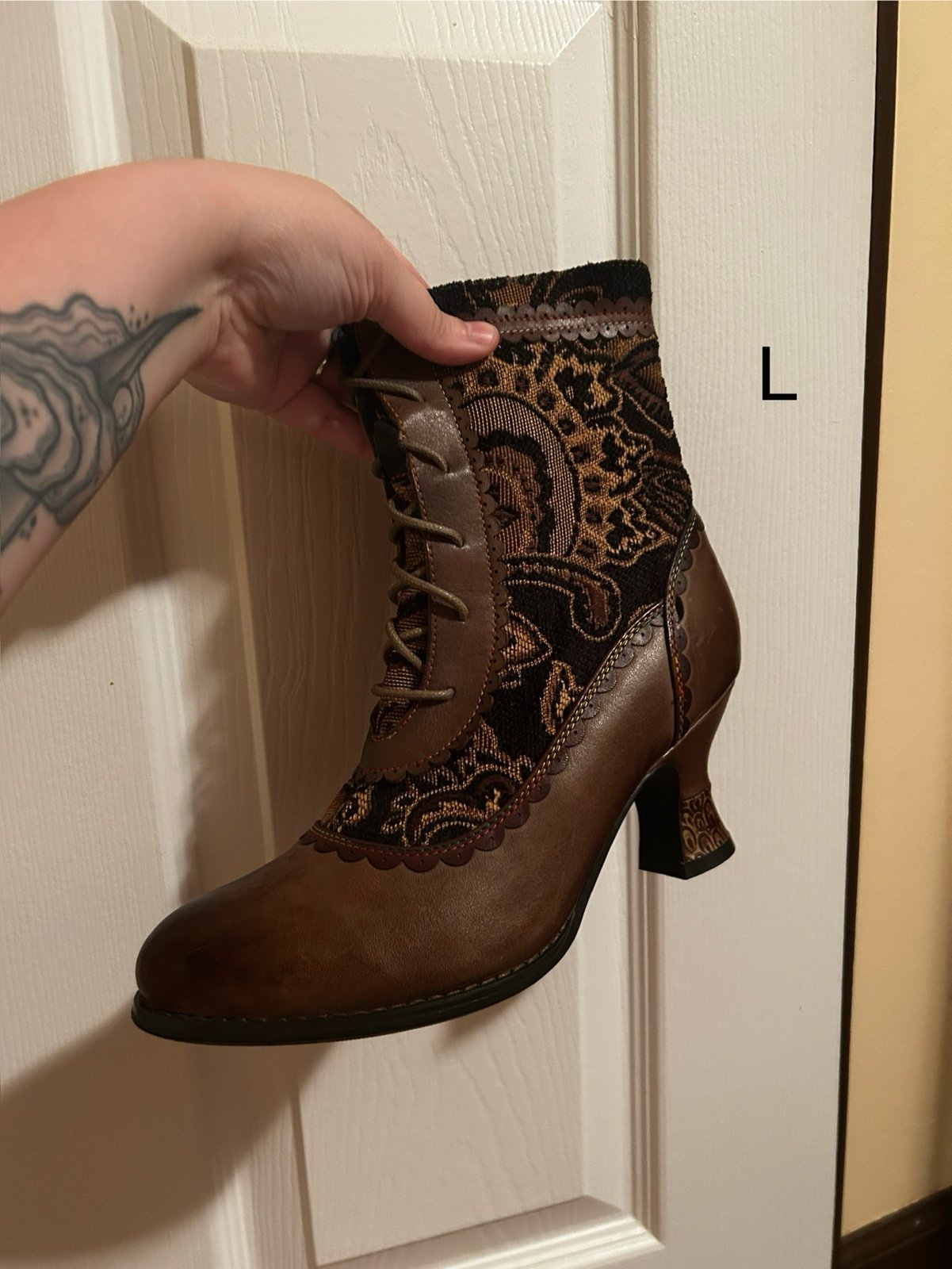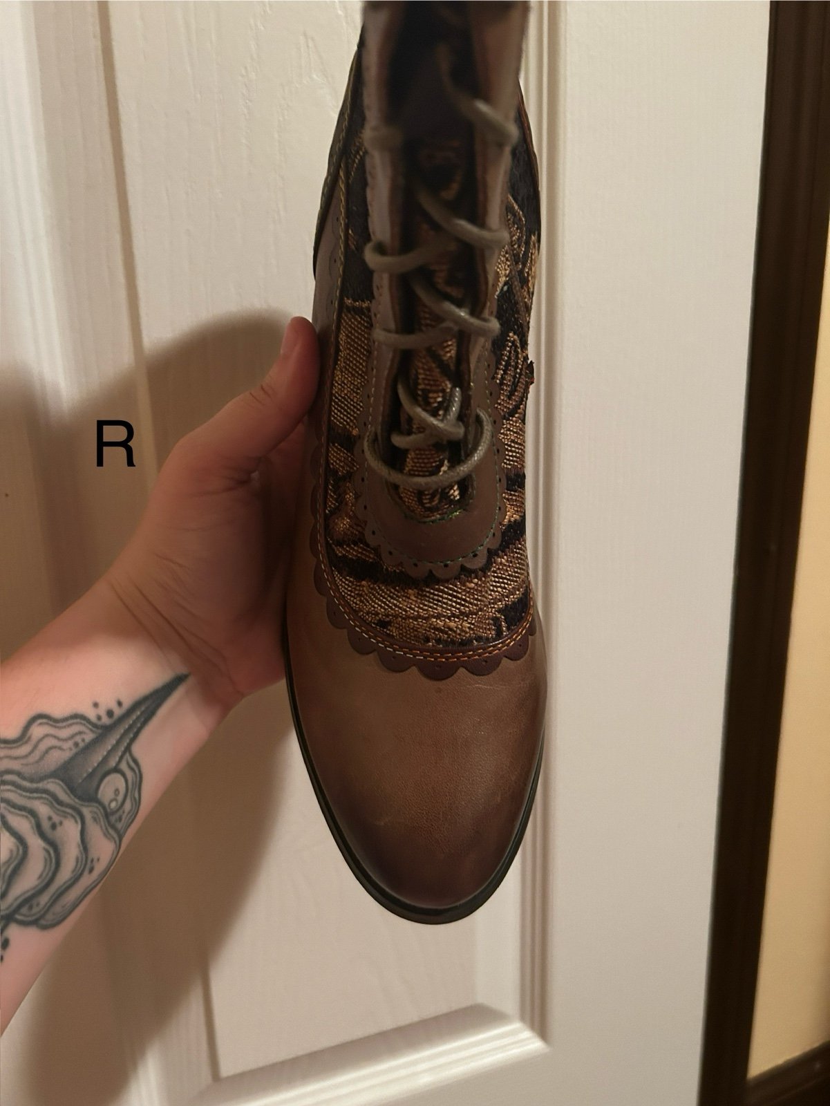 Beautiful pair of boots. Only getting rid of them because they don’t fit me. Last two photos are included to highlight the details of the trim and material.