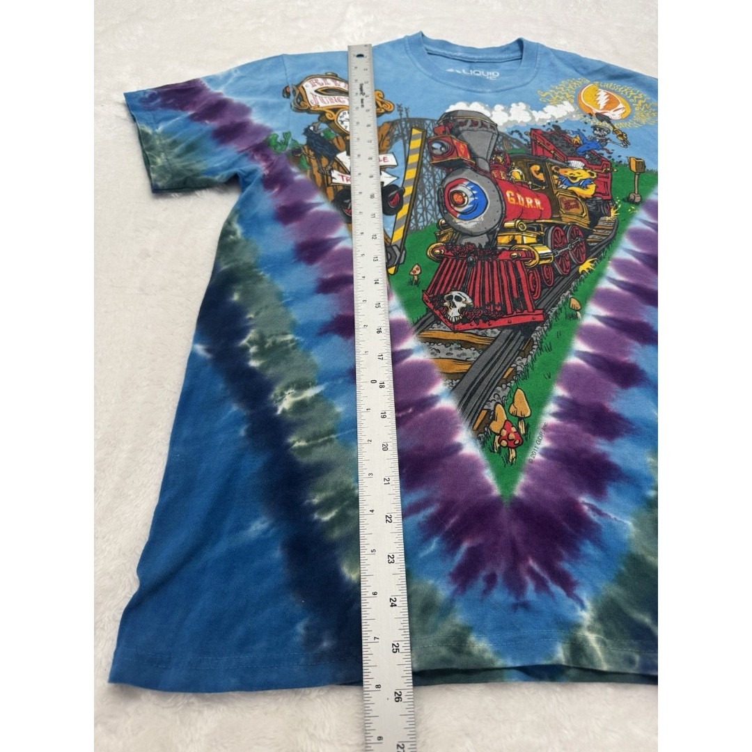 The Grateful Dead Casey Jones Tie Dye Liquid Blue T-Shirt in size medium is a stylish and comfortable shirt for men. Featuring a regular fit and short sleeves, this shirt is adorned with a colorful tie-dye design and a music-themed character, Casey Jones. The Liquid Blue brand ensures high-quality and unique designs that will appeal to fans of the Grateful Dead and collectors of music-inspired clothing. Ideal for casual wear or showing off your love for the band, this t-shirt is a must-have for any Deadhead.