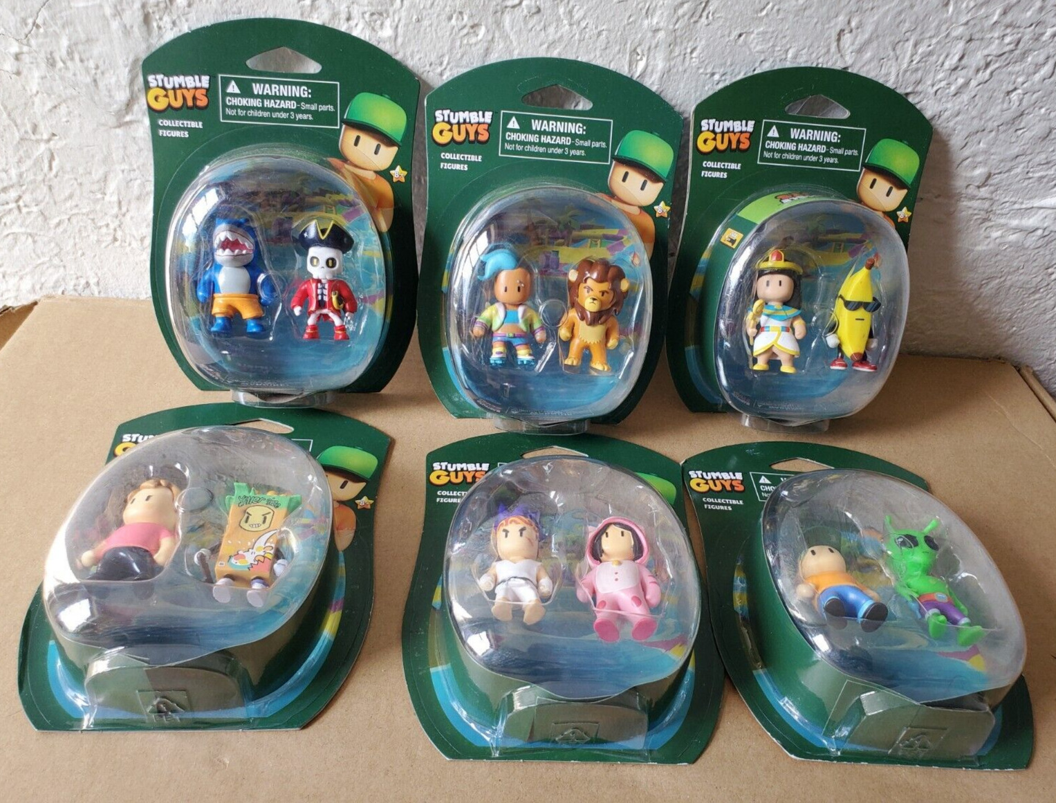 Stumble Guys Mini Action Figures Leonidas, Mr. Stumble, Ms. Stumble,Capt Noheart, Meowmer, Megalodon, Sensei Firefist,Chicken,Veloci T, Cleopatra, Banana Guy & Cereal Killer 6-Pack.