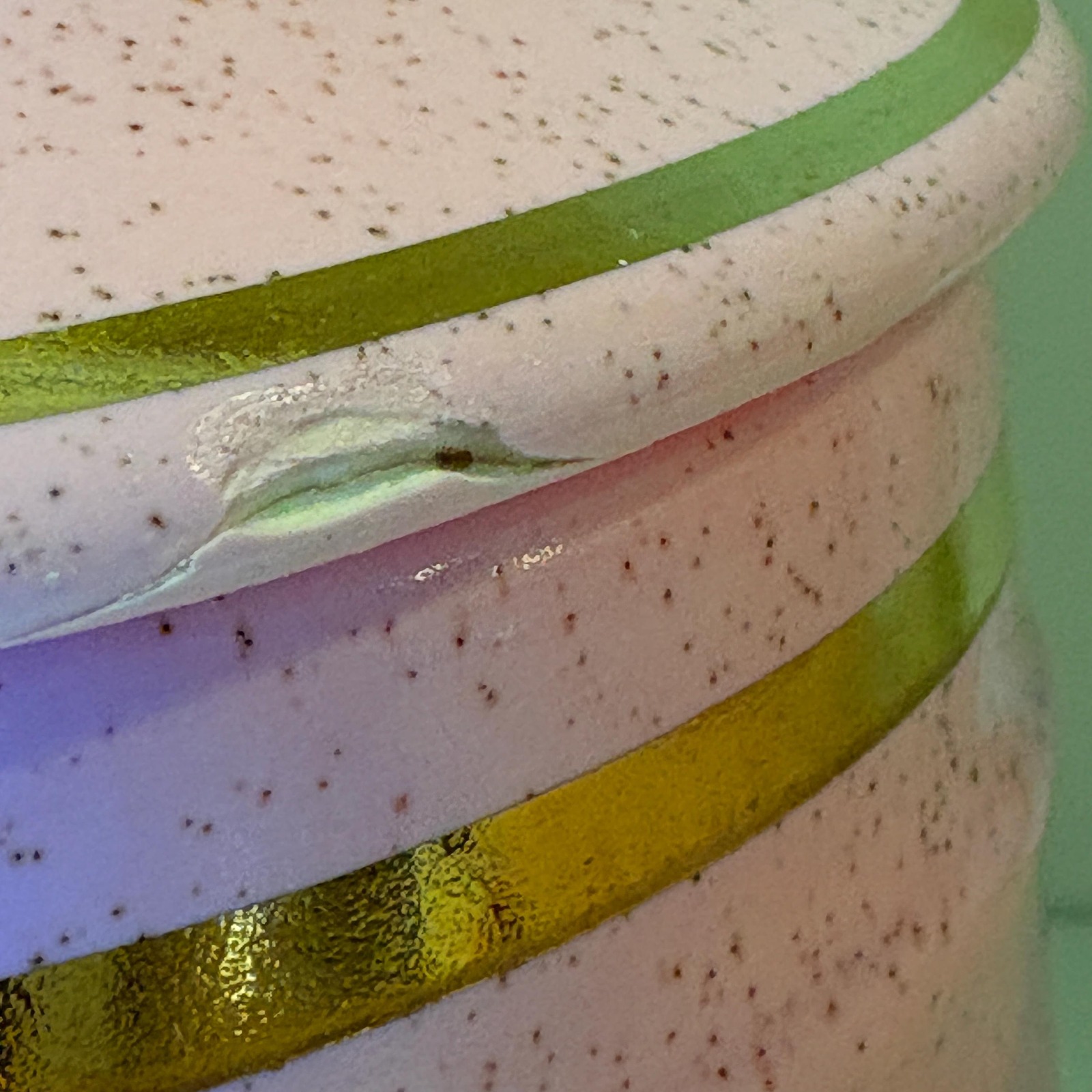 Colors: pastel pink and yellow speckled glaze with gold trim
