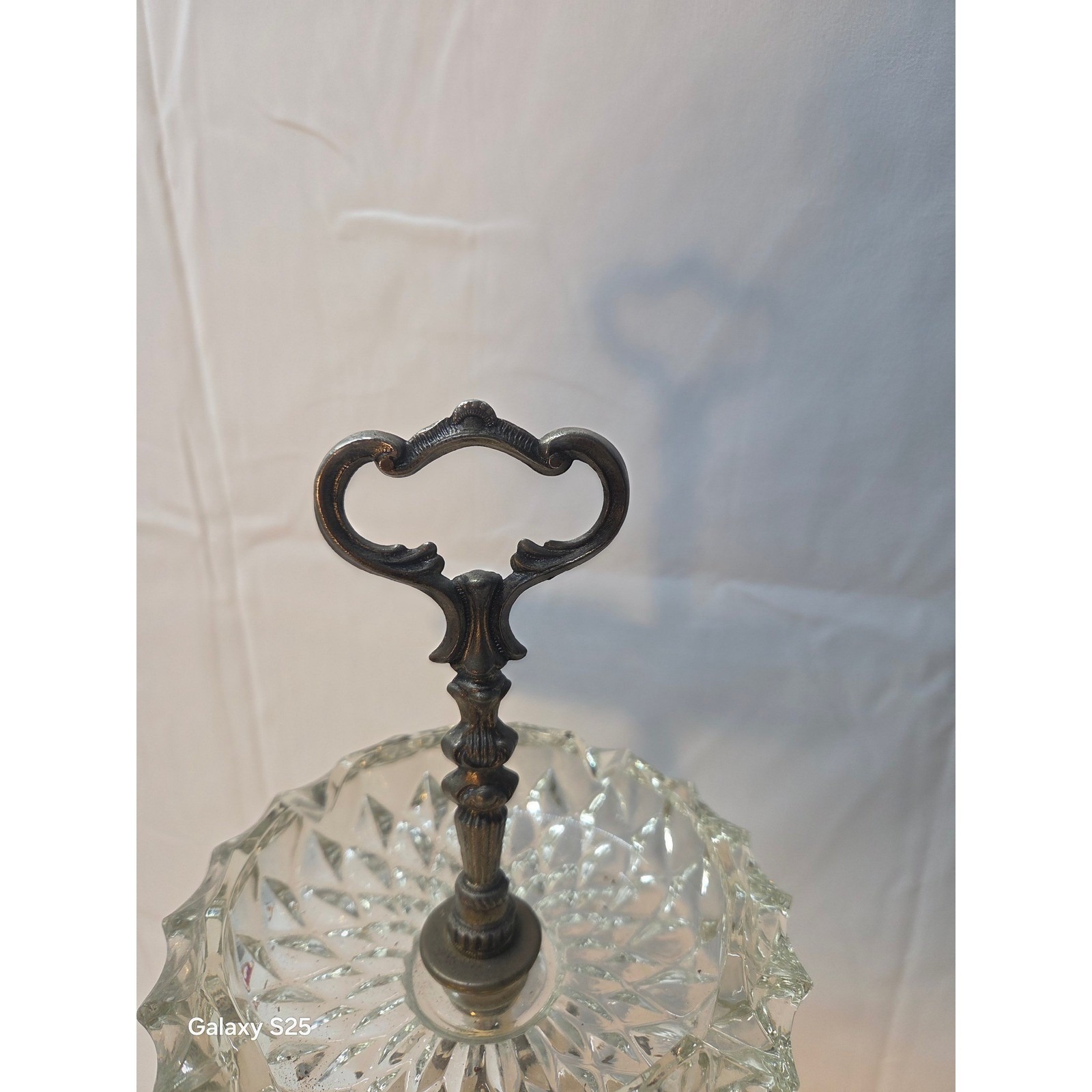 Top Dish: Shallow cut-glass ashtray with scalloped rim and central handle