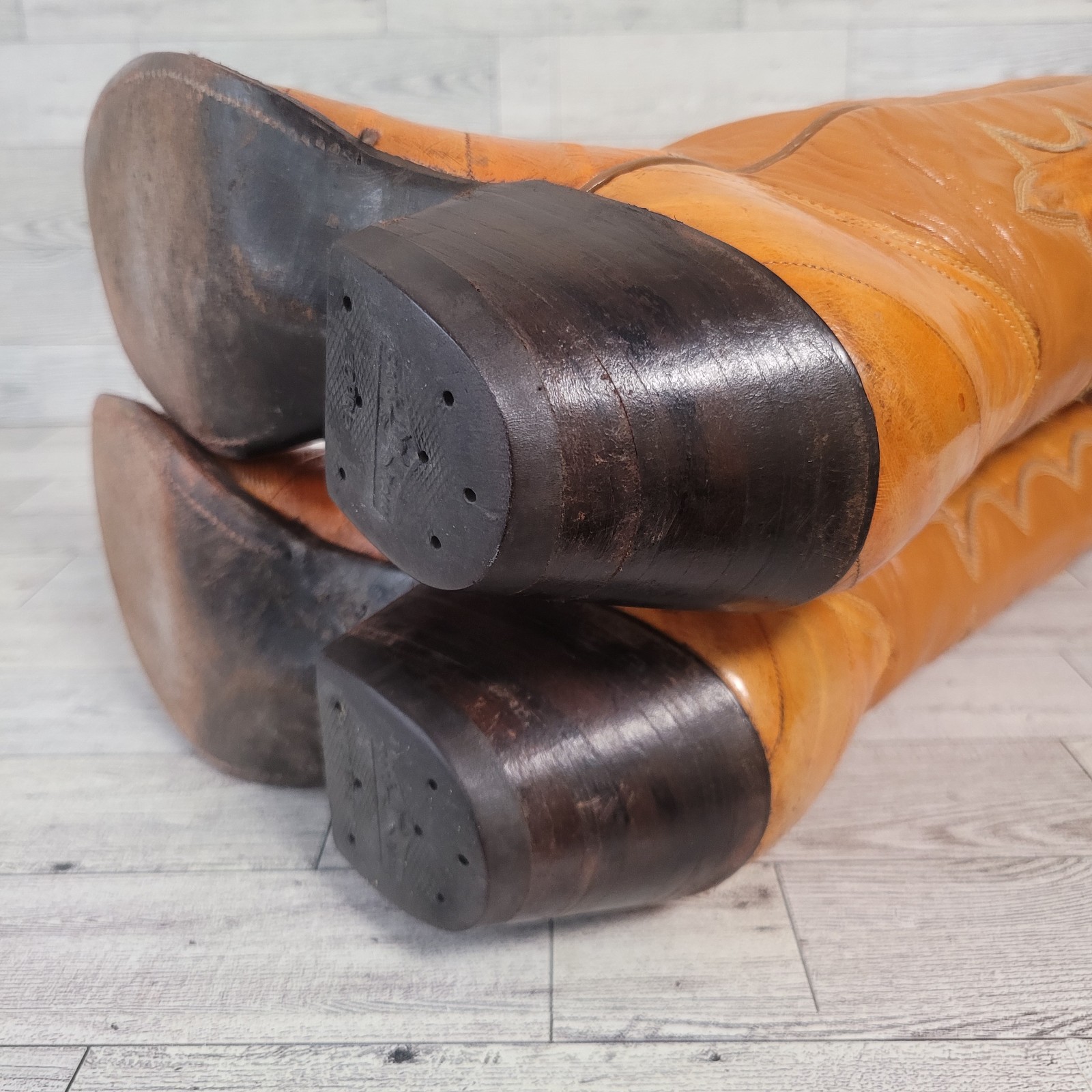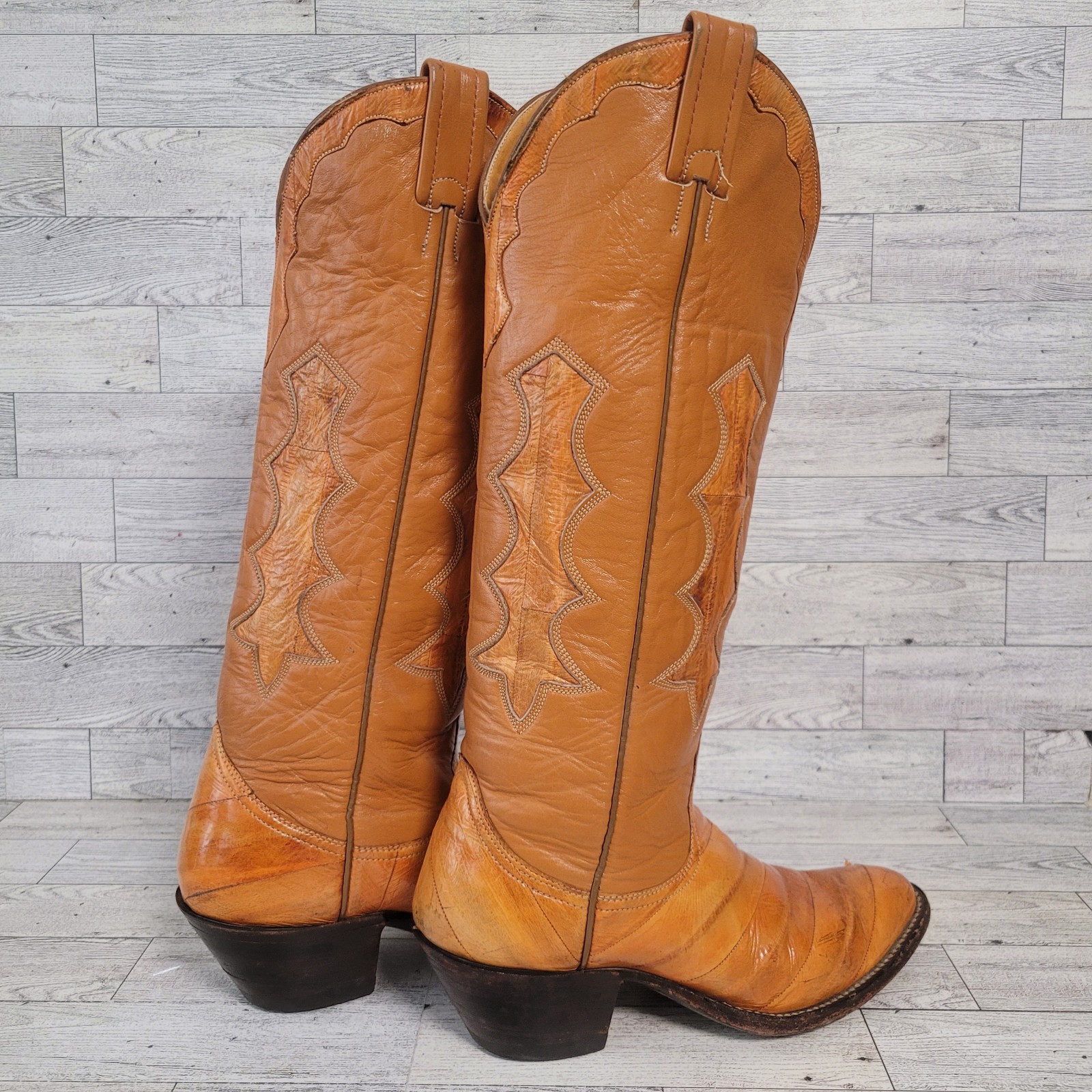 Vintage Nocona Western Brown Exotic Eel Leather Inlay Cowboy Boots Women's 6 C