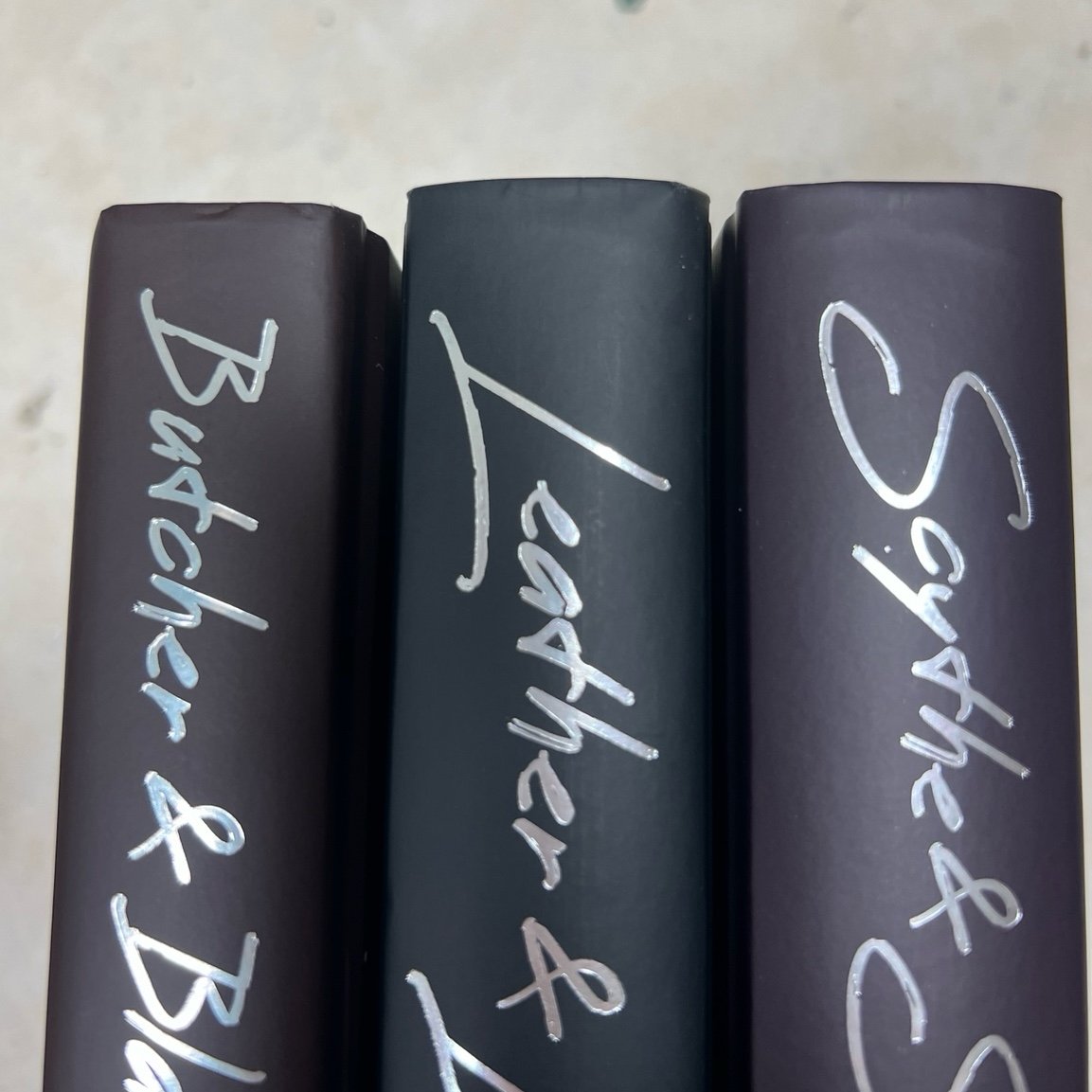 FairyLoot special edition hardcovers of The Ruinous Love Trilogy by Brynne Weaver, Butcher & Blackbird (signed), Leather & Lark, and Scythe & Sparrow. Some minor visible wear/dings/damage from shipping on dust jackets and hardcases. Please check all pictures before buying. From a pet and smoke free home.