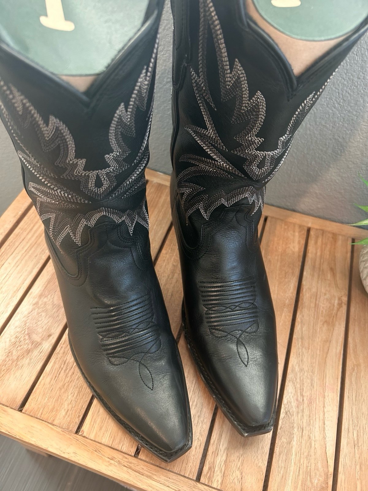 Tecovas, the Sadie in midnight/black. Great cowboy boot with a shorter boot shaft. Worn a few times and some regular wear on bottoms, but nothing very noticeable on boot itself. In excellent condition.