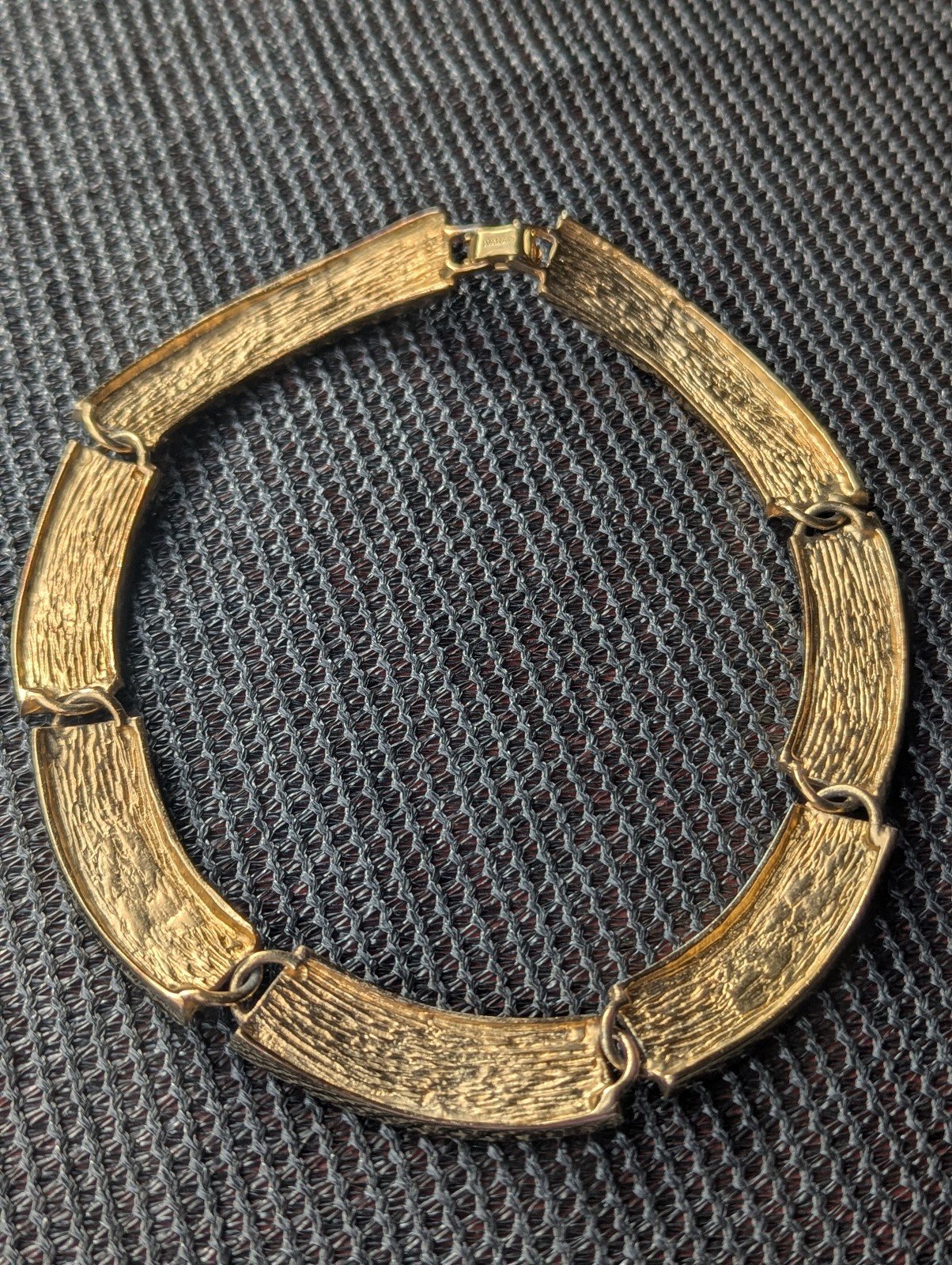 Vintage 1990, New, Never worn without Tags Ivana Trump Roman Numerals Statement Gold Tone Necklace Choker, Earring (clip-on), Bracelet, & Ring Set
