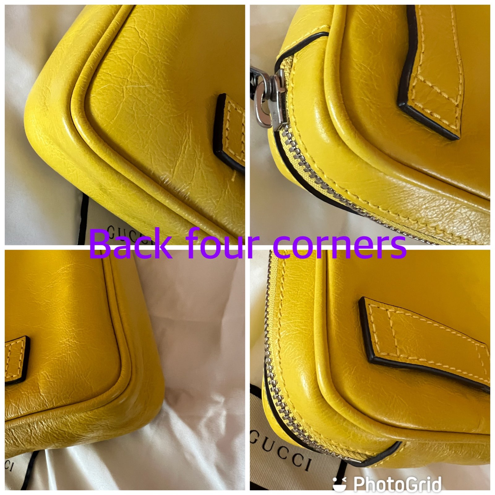 Gucci Morpheus body belt bag crafted in yellow soft leather with aged silver hardware. Front has flap pocket with magnetic closure and silver and gold interlocking GG logo accent. Top zip closure. Interior has yellow canvas lining, a side zip and slip pockets. Belt is size 90 or 36. Minimal dirt and corner creases due to nature of leather, handling and storage. Interior is clean. No rips, tear or stain. Belt has curling due to storage. Approximate measurements: 9.5”x6”x2”. Comes with dust bags, care cards and tag.
