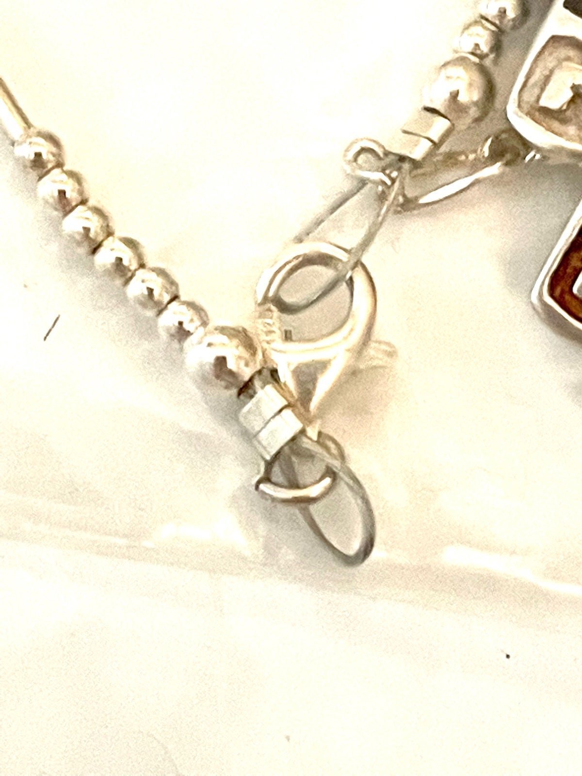 This is a fabulous southwestern reversible sterling Turquoise and Opal necklace which is 16-18” long. The craftsmanship on this is exquisite and there’s an extension chain for adjustability. Don’t miss out on this! I believe one ray is signed and there’s a silver stamp on the clasp.