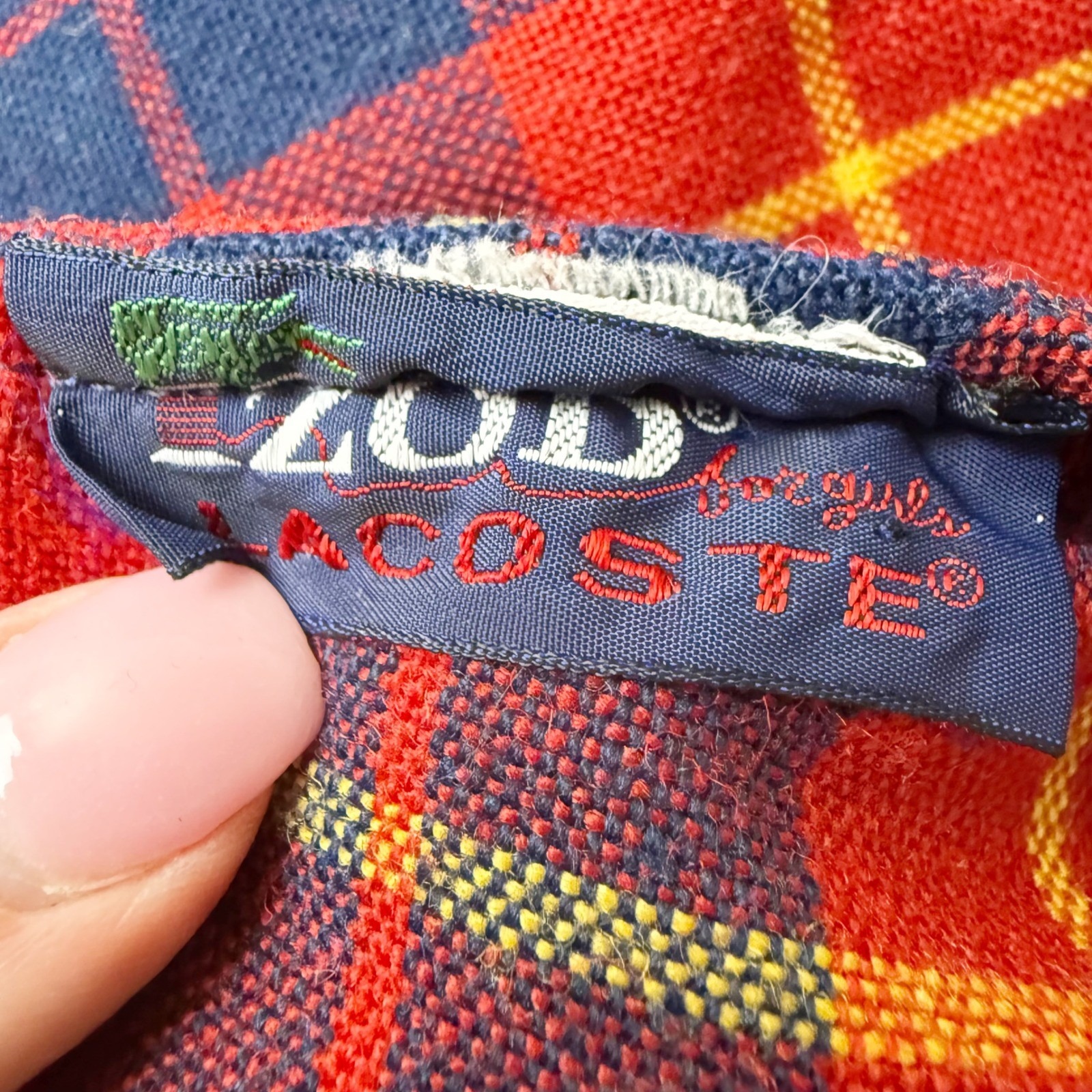 A classic plaid pinafore dress for kids. This charming sleeveless dress features a timeless red, blue, and yellow plaid pattern with a pleated skirt for a playful silhouette. A discreet Lacoste crocodile logo adorns the chest, adding a touch of iconic branding. The back features a convenient zip closure for easy dressing. Perfect for school days, family gatherings, or a charming everyday outfit.