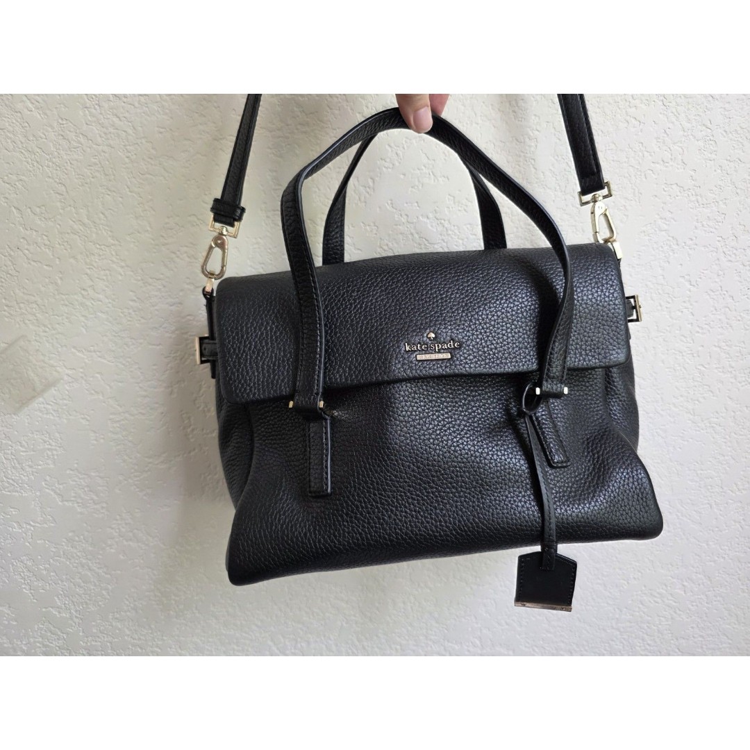 The Kate Spade Holden Street Leslie Satchel Crossbody Bag Purse in black is a versatile and stylish accessory for any occasion. With a rectangular shape and adjustable crossbody strap, this medium-sized bag is perfect for travel, weddings, parties, casual outings, work, or business meetings. Made of pebbled leather with gold hardware accents and a buckle detail, this satchel features a magnetic, flap, and snap closure for security. Lined with fabric and featuring inner and outer pockets, this classic designer piece from Kate Spade is both practical and fashionable.