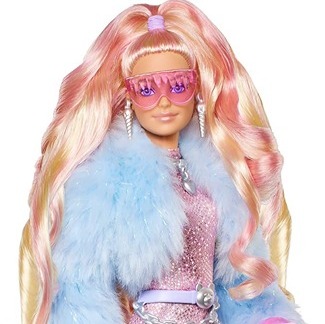 Barbie is ready to hit the ski slopes in her winter outfit! With an articulated body, this posable doll is all set for tons of fun. She wears a furry blue coat over a sparkly pink ski suit that matches her long, pink highlighted hair.