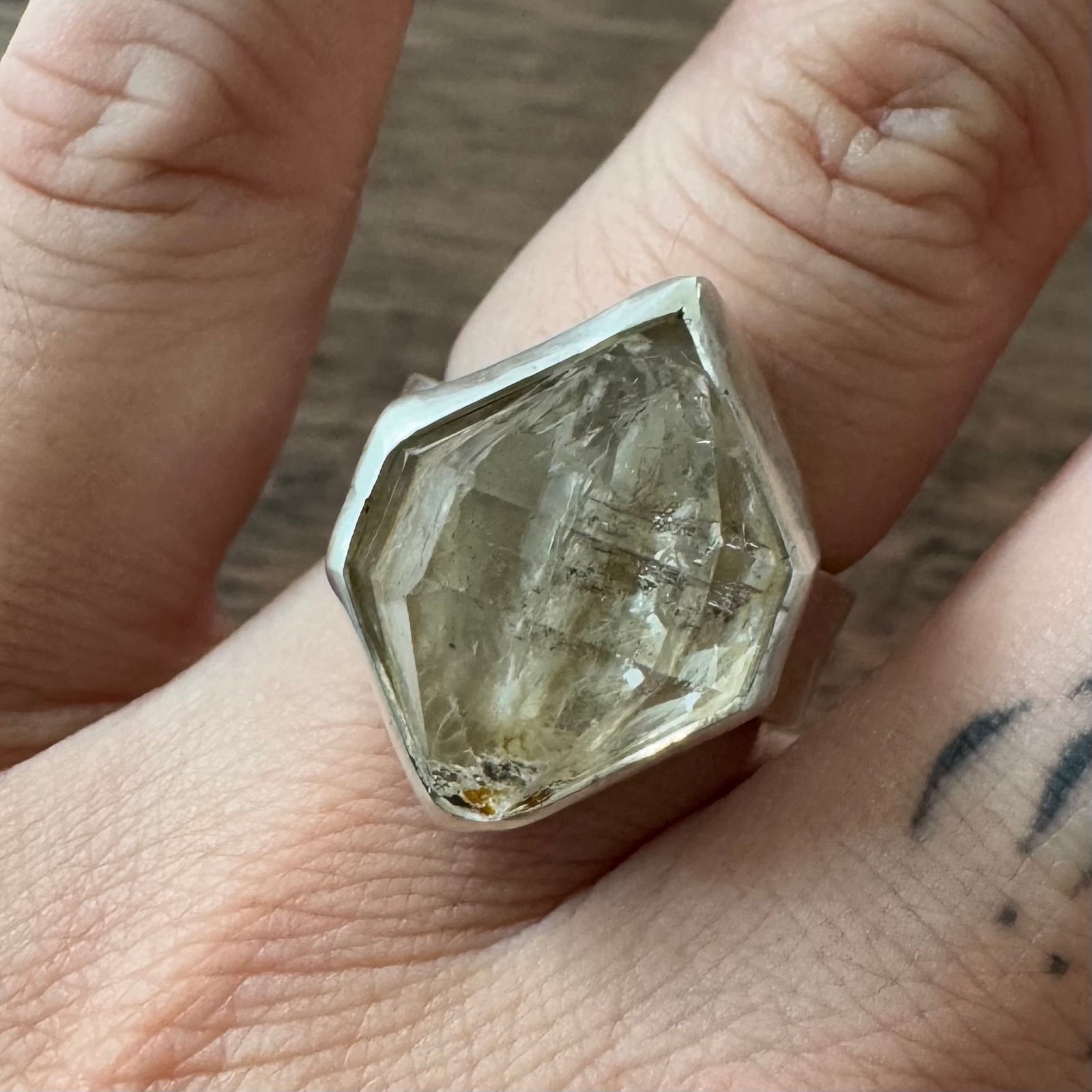 Handmade Chunky Herkimer Diamond Statement Ring 925 Sterling Silver