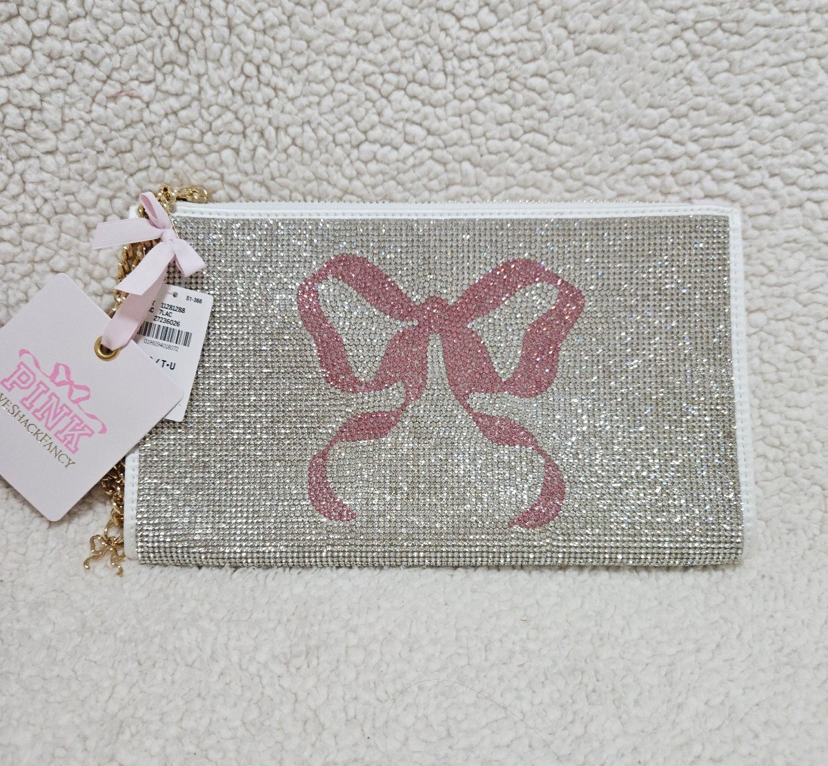 BEAUTIFUL blinged out pouch with Pink Bow detail on front!