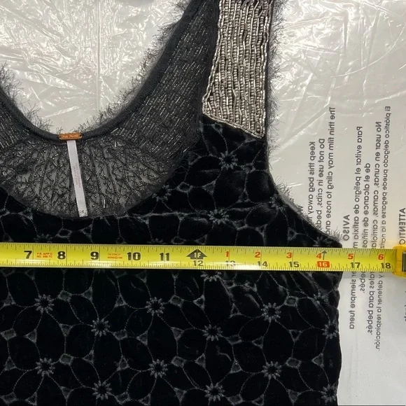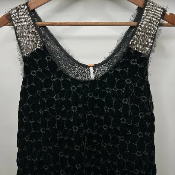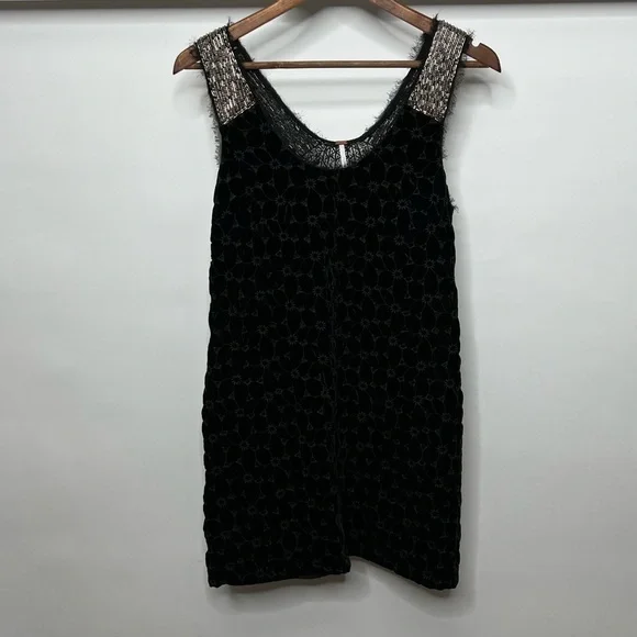 Free People Women’s Beaded Black Velvet Mini Shift DressCondition: Pre-owned in good condition Department: Women Brand: Free PeopleAccents: BeadedFabric Type: Velvet Color:Black Size Type: RegularSize: 2Sleeve: SleevelessClosure: Zip & HookStyle: Mini Shift DressDress Length: Short Features: Lined, Velvet Beaded, Eyelet Hole, Comfort Occasion: Party/ Cocktail Season: Any Season