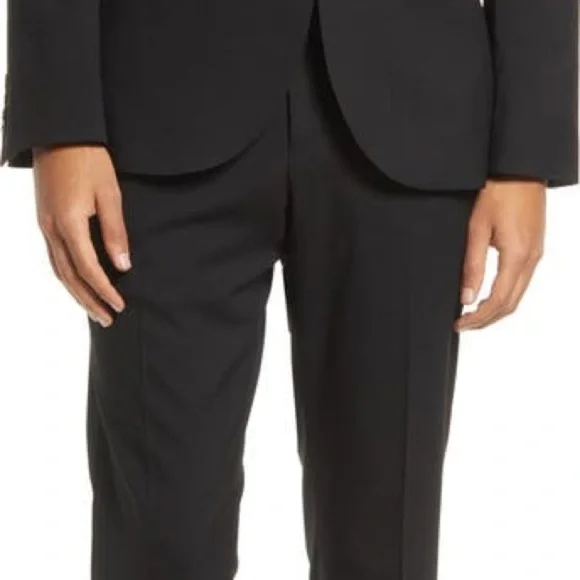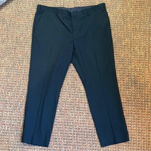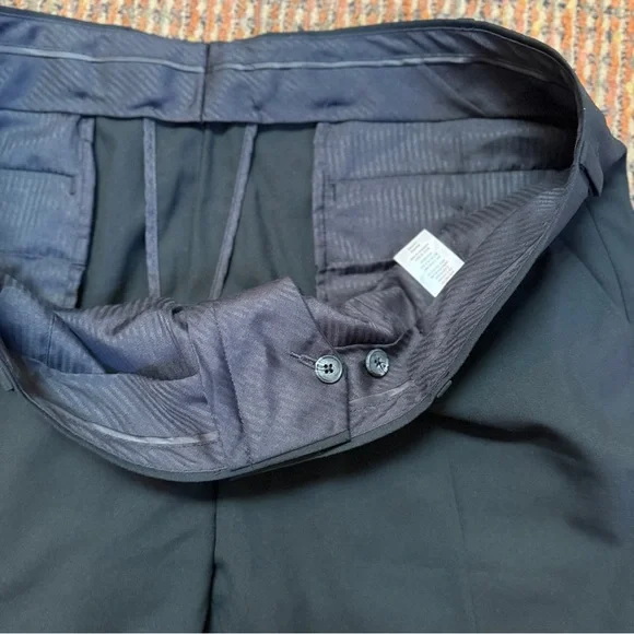 🆕 New without tags. Excellent condition. Never washed or worn! Check out the photos 📸 for a closer view. Heads-up: 🎨 Color shades may vary due to photo lighting. 🌟See photo for approximate measurements taken flat! 📏•Material: 64% Polyester, 34% Viscose, 2% Elastane•Lining: 100% Polyester•Extra trim fit•Hook and button closure•Back button pockets•Unhemmed for custom fitting.N#02 017business wear, formal attire, slim leg, tailored fit, professional look, elegant trousers, dress pants, office clothing, evening wear, black slacks, high-quality fabric, modern fit, versatile wear, refined style, menswear, breathable material, business meeting, office attire, formal event, evening function, job interview, corporate wear, upscale event, business casual, professional setting, dressy occasions, cocktail