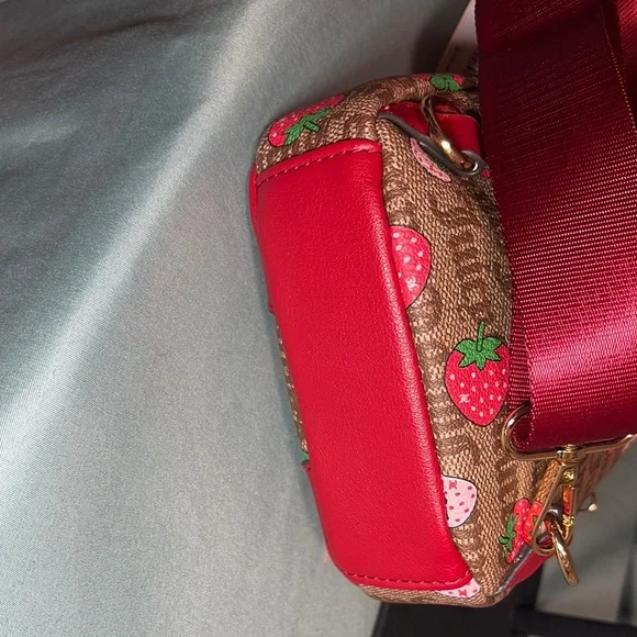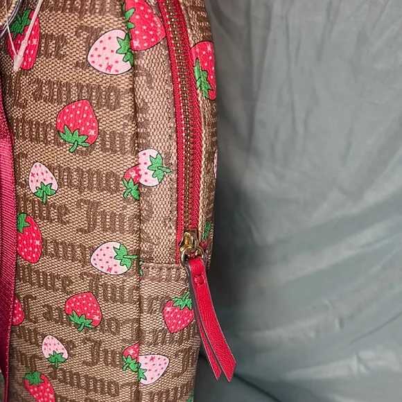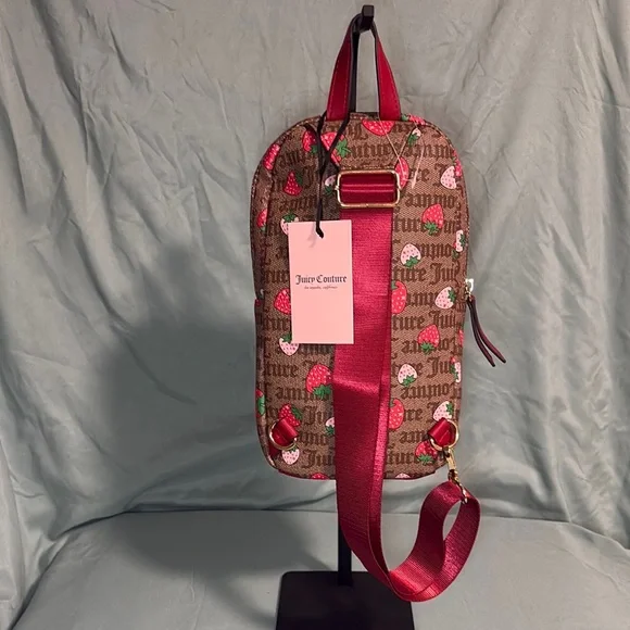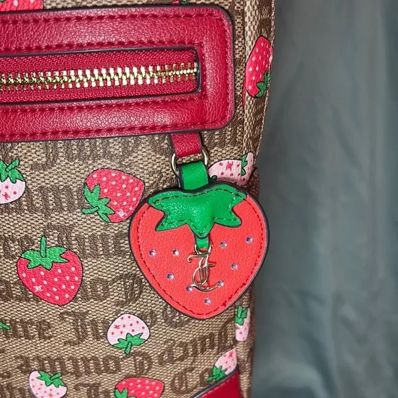 Brighten up your accessories game with this Juicy Couture Freshly Picked Sling Bag in Chestnut Chino/Cool Red. Covered in a playful strawberry print over Juicy’s signature monogram canvas, this eye-catching crossbody is trimmed in bold red vegan leather and features a front zip pocket, gold-tone hardware, and an adorable matching strawberry charm. The interior is fully lined with Juicy Couture’s signature script design and includes a zip pocket for added storage.This stylish sling bag is perfect for errands, festivals, or adding flair to any outfit. Adjustable strap ensures a comfortable fit.📌 Details:•Brand: Juicy Couture•Style: Freshly Picked Sling•Color: Chestnut Chino / Cool Red•Closure: Top zip + front zip pocket•Interior: Zip pocket with logo lining•Strap: Adjustable crossbody•Condition: New With Tags (NWT)•Original MSRP: $79💖 A must-have for Juicy fans and strawberry lovers alike!Tags:#JuicyCouture #StrawberryBag #Crossbody #NWT #Y2KStyle #JuicyCoutureBag #FestivalBag #StreetStyle #CuteAccessories