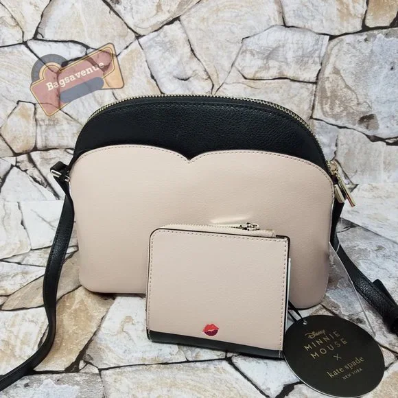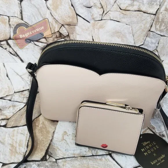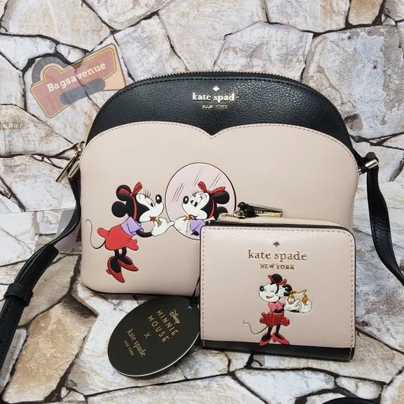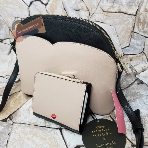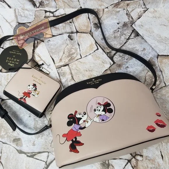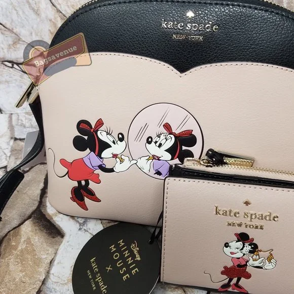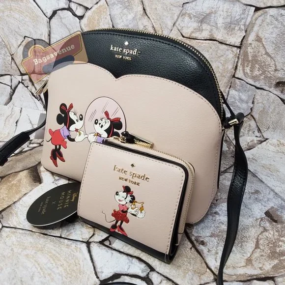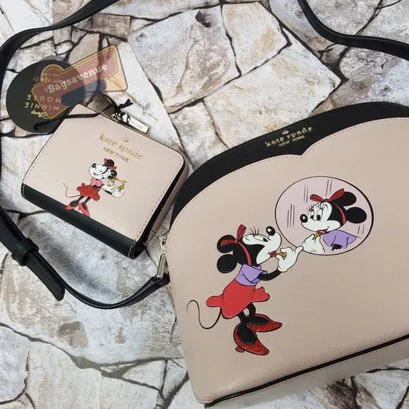 (◕‿◕✿)#bagsavenue warm vellum beige minnie mouse dome crossbody wallet Kate Spade▪️ Dust bag not included▪️ NWT (new with tag) (ꈍᴗꈍ) No trades, No Dust BagMORE DETAILS: Authentic crossbody -Minnie Mouse X Kate Spade Medium Dome Crossbody Bag (Pale Vellum Multi) Material: LeatherFeatures: Adjustable Crossbody Strap, Zipper Closure, 1 Inner Zip Pocket, 2 Outer Slip PocketsMeasures: 5" H x 7" W x 2" Dwallet - Refined grain leather2 way spade jacquardksny metal pinmount logozip & snap closure6 cc slots1 bill foldApprox. measurements: 3.7" h x 4.3" w· • —– ٠ ✤ ٠ —– • · OFFERS ARE WELCOMED, PLEASE BE REASONABLE.