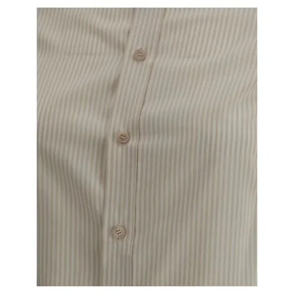 Burberry’s silk Shirt is an elegant and sophisticated garment made of fine silk that offers a luxurious and comfortable feel. The short-sleeved design makes it ideal for the warmer season, while the classic collar lends a touch of sophistication. The front button closure ensures practicality and style. A distinctive detail is the ribbon with Burberry’s legendary Check inserted in the side panels, which allows you to adjust the gathering for a customized fit. The vertical stripe pattern adds a fresh and modern touch to the design.Sku: 8108159_C2713Season: SS25Fit: RegularComposition: GENERAL 100% SilkMADE IN TUNISIASizing: Clothing and shoe sizes have been converted to their closest US size based on universal size charts. Due to the many variables in sizing this may differ from the European size found on the tag or the brand's individual size chart. Please reach out for additional measurement requests or to be provided with the tag size.About Us:We are a small, woman owned business in the beautiful Hudson Valley Region of NY. I am a nurse by trade turned business owner after merging my love of fashion with sustainability in the resale industry.All of our NWT luxury goods are purchased legitimately from our brand partners and come with a 100% Authenticity Guarantee. Items above $500 may also ship to 's authenticity team for inspection prior to delivery.Ships in 3-5 business days so we can package with care. Please allow us a few