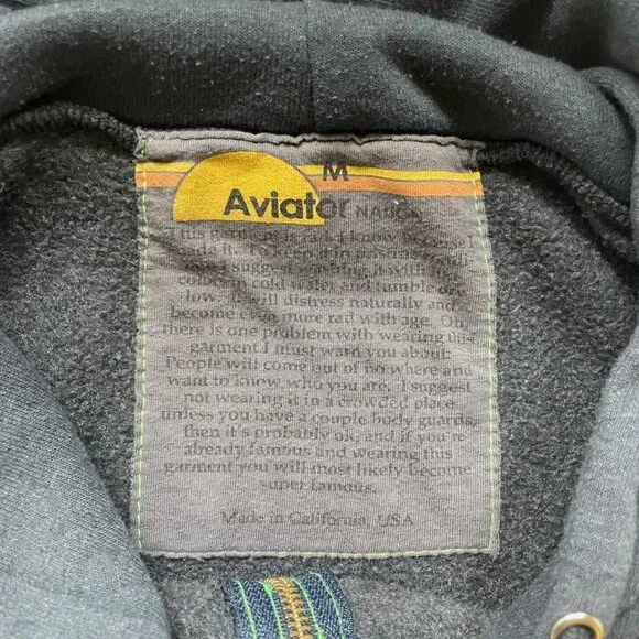 Women's Aviator Nation Rainbow Stripe Hoodie Color: Charcoal/Clssic StripeGently used, you can see on pictures it pilling on lower part of arm sleeves. Fraying on one of the drawstring ends. Purchased from Bloomingdales. Supercomfortable and hand-sewn in Los Angeles, this hoodie has gone through an intense breaking-down process to give it a worn-in feel you'll love.25 1/2" length (size Medium)Front zip closureLined drawstring hoodLong sleeves with ribbed cuffsSplit kangaroo pocket50% cotton, 38% polyester, 12% rayonMachine wash, line dry