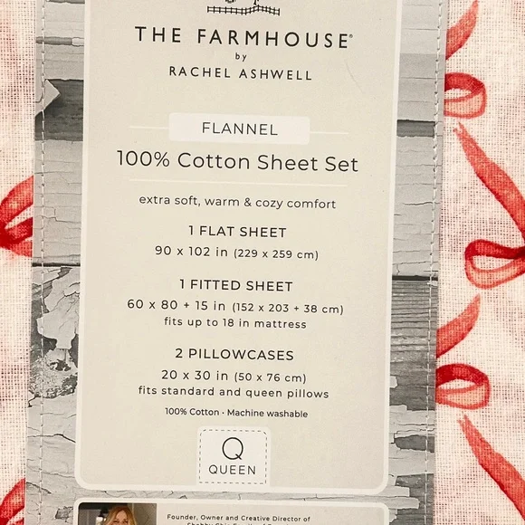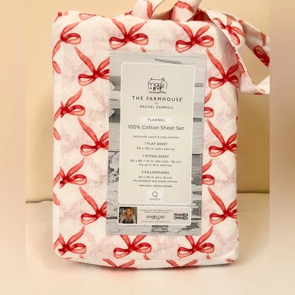 The Farm House QUEENRed Bows Holiday 100% Cotton FLANNELsheets set.