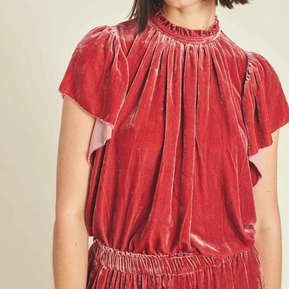 We love the ultra feminine Carla High Neck Blouse from Trovata in a perfect velvet for the holiday season. Both its high neck ruffled collar and wide ruffle sleeves feature a quaint trim detail along the hem lines that separate this blouse from the pack. With a relaxed A-line body and finished with a single back neck button, we love this sweet top paired with your favorite straight legs and flats. High neck ruffle collarTrim details along hemline Single back neck button closure82% Viscose, 18% SilkMachine wash cold, separatelyTumble dry low, medium iron as neededImported
